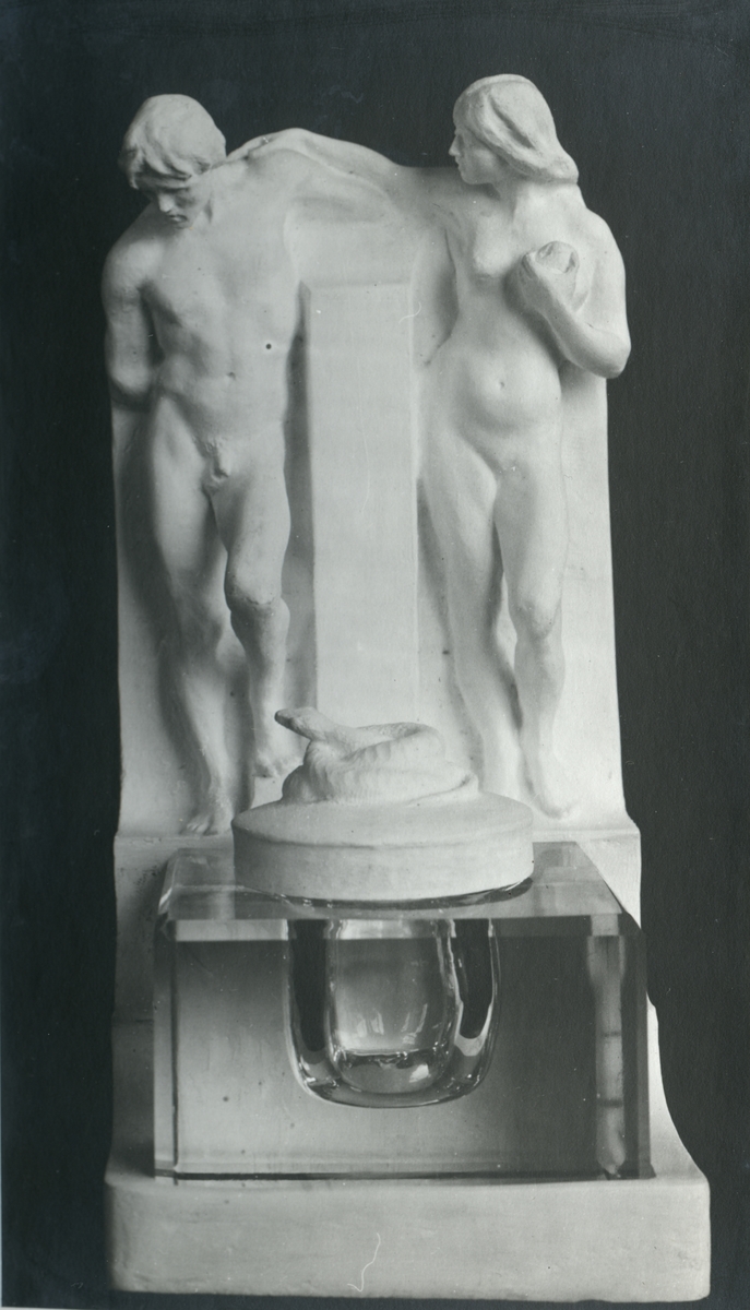 Skulptur av John Runer. Skriftyg "Syndafallet" 1917. 24 x 11.
