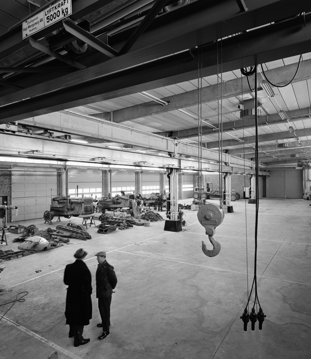 Interiör, reservdelslager. Två samtalande herrar i förgrunden, snett uppifrån.