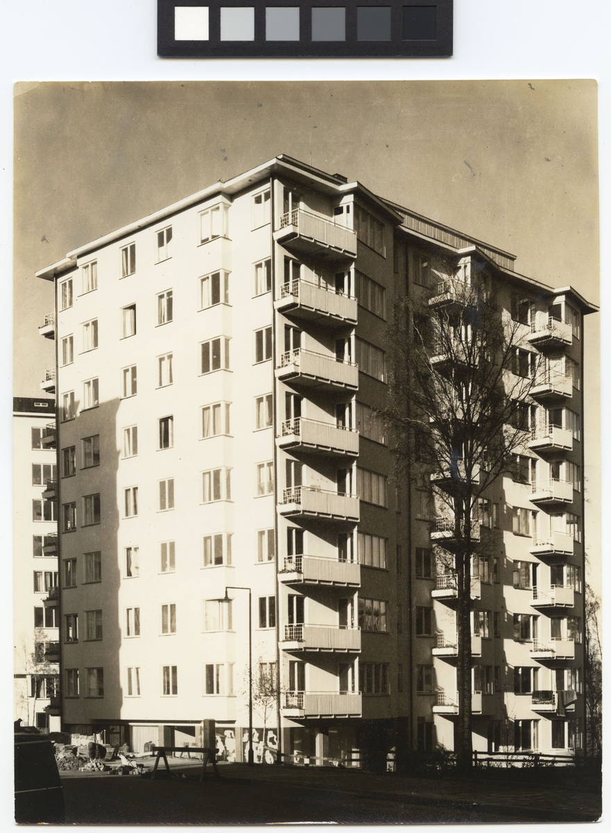 Titel: YK-huset, Yrkeskvinnornas kollektivhus Exteriörbild från byggtiden