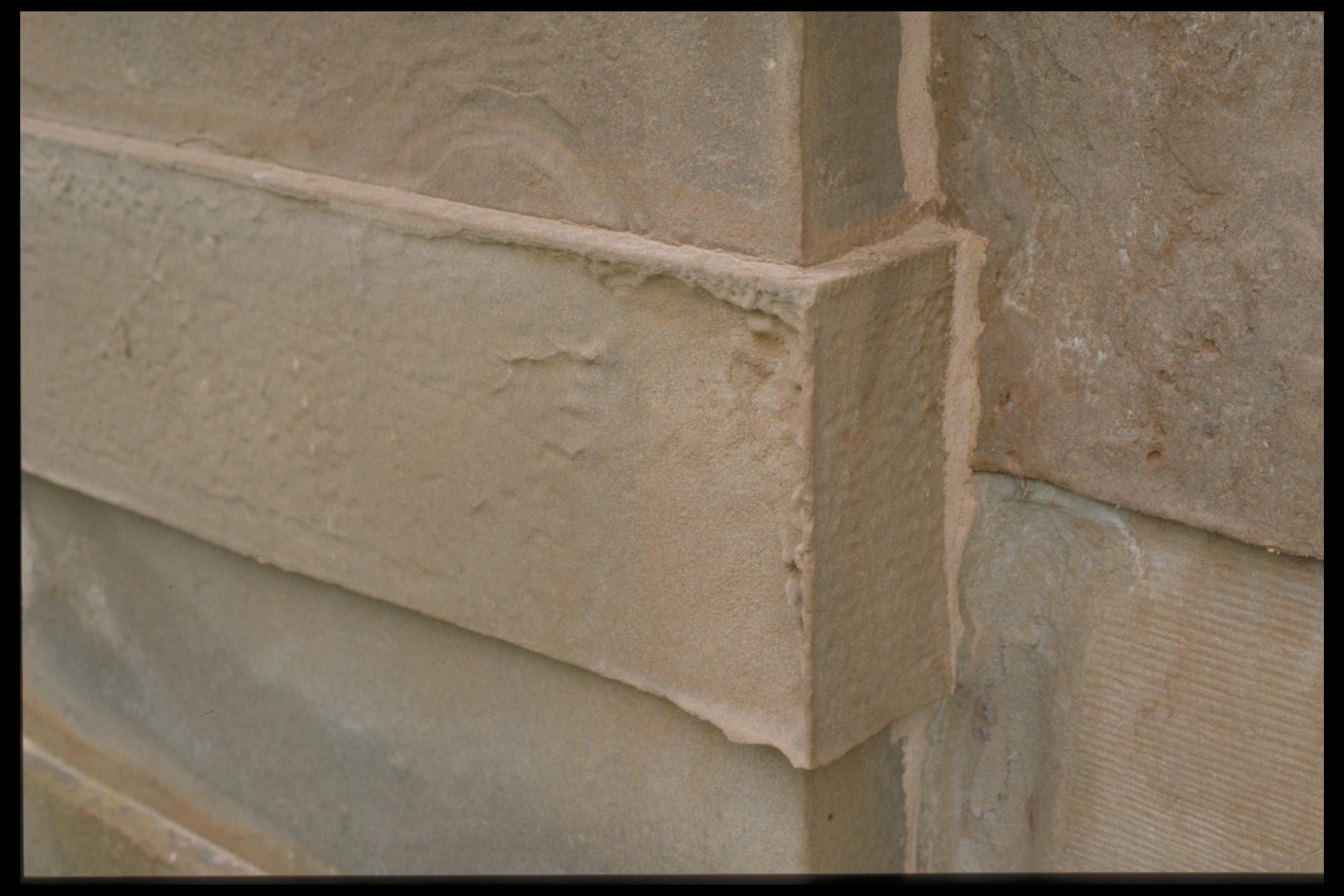 Fasad mot trädgården vid Övedskloster. Bandad pilaster.