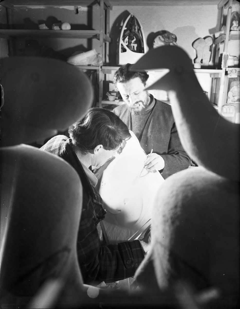 Ralph Erskine och Egon Möller Nielsen i Möller-Nielsens ateljé.