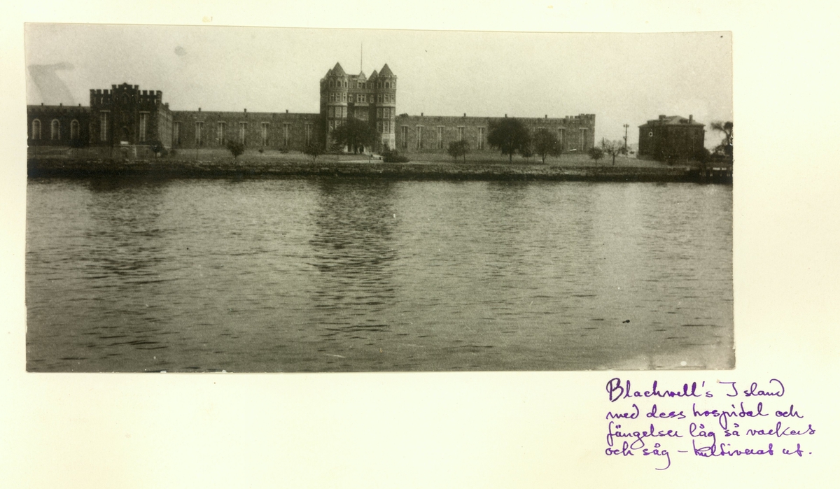 Exteriör. Blachwell´s Island med dess hospital och fängelser. Resebild ur Gunnar Asplunds samling.
