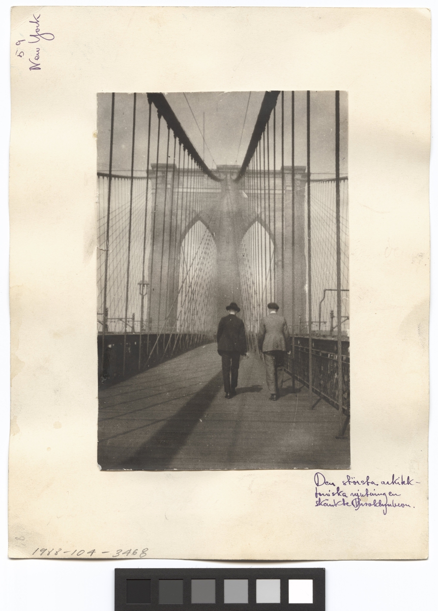 Exteriör. Två män på bron. Resebild ur Gunnar Asplunds samling.