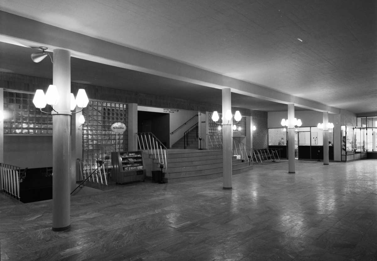 Interiör av stora foyern med lampförsedda pelare