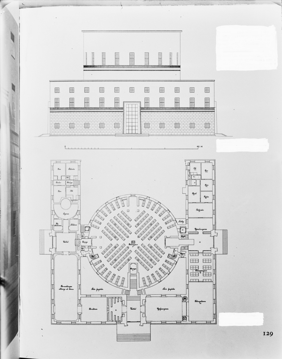 Stockholms stadsbibliotek ritat av Gunnar Asplund
