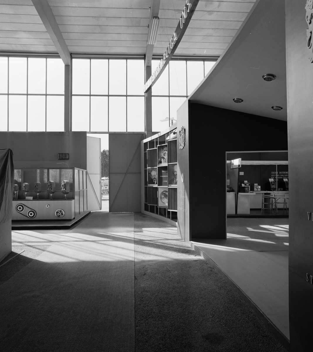 Interiör av utställningshall. Ljusinsläpp från höga fönster