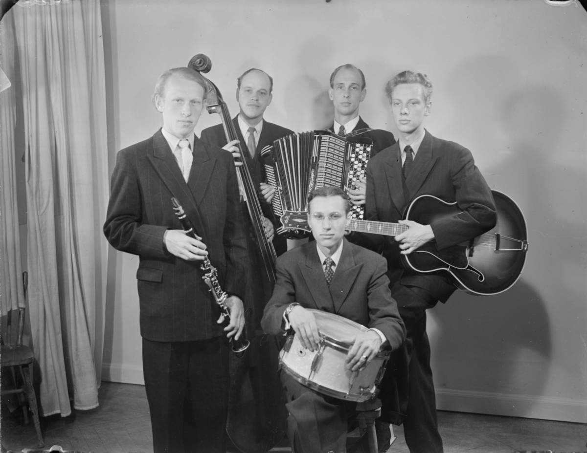Fem unga män med instrument