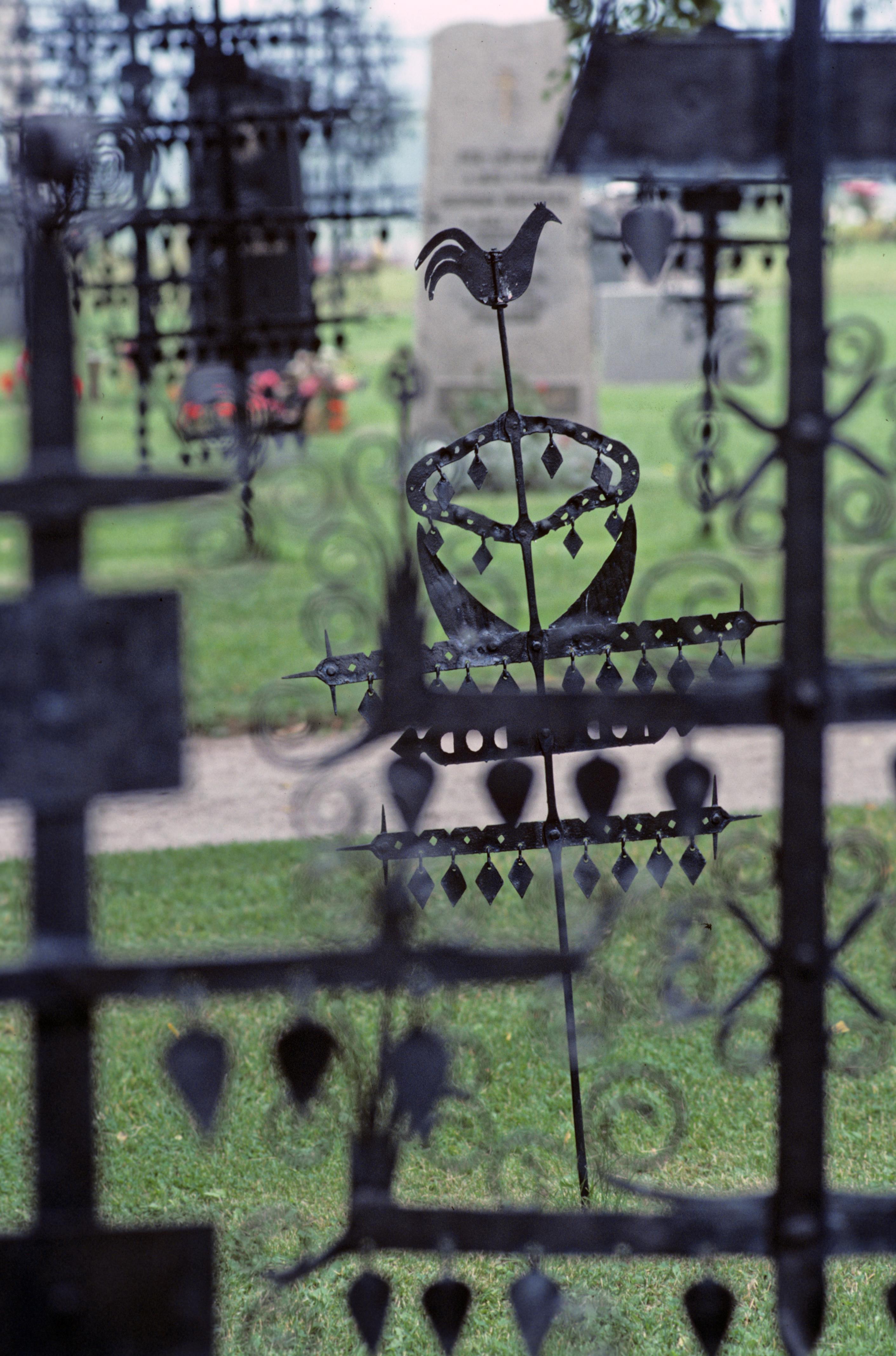Beskrivning: Kyrkogården, smideskors. Bilden troligen från mitten av 1980-talet.