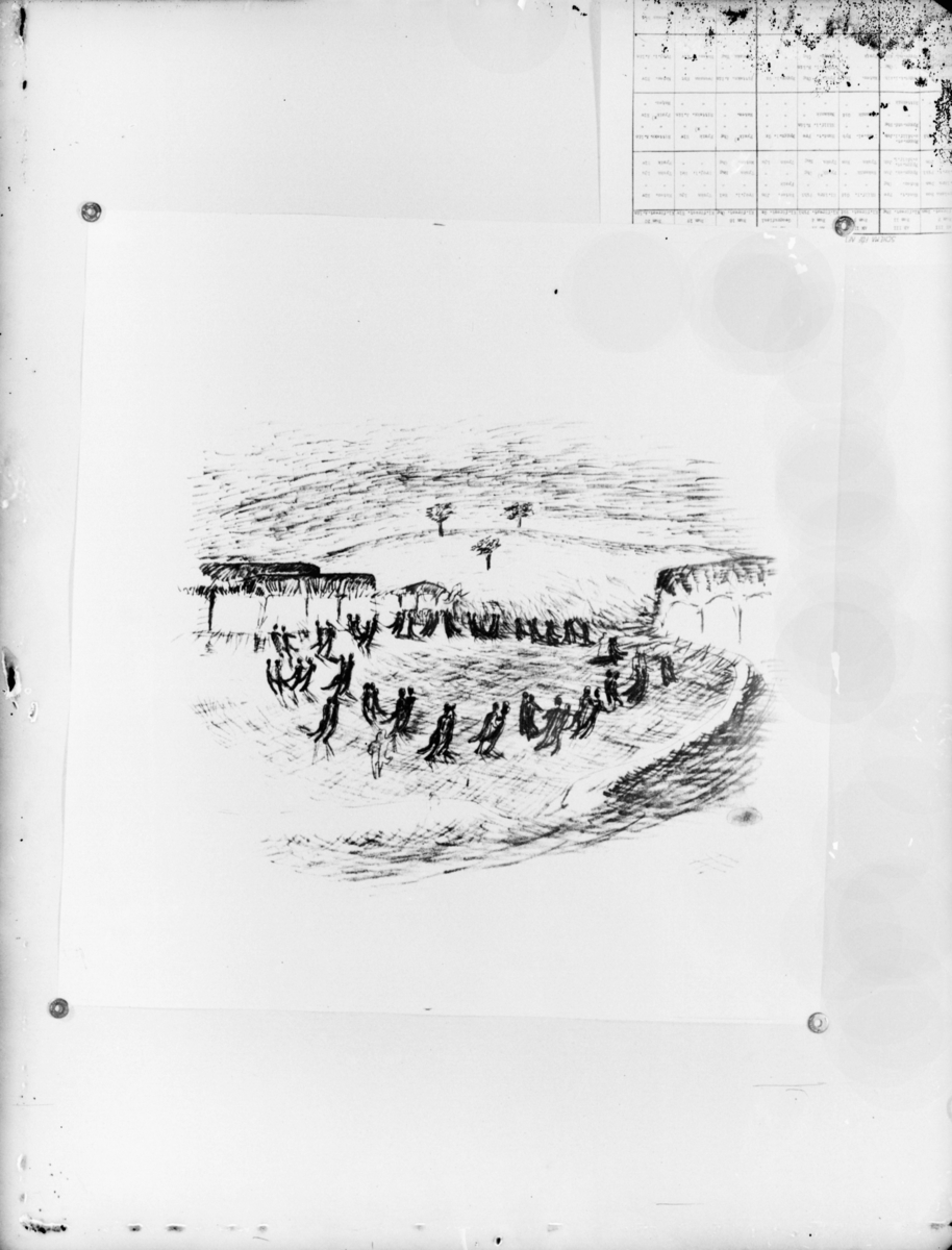 Perspektivteckning av Tore och Erik Ahlsén med en dansbana.