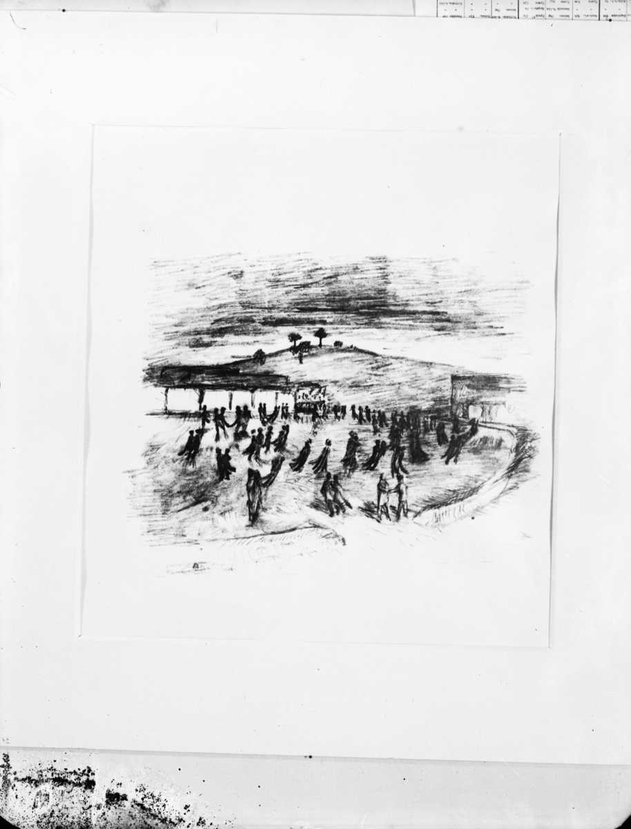 Perspektivteckning av Tore och Erik Ahlsén med en dansbana.