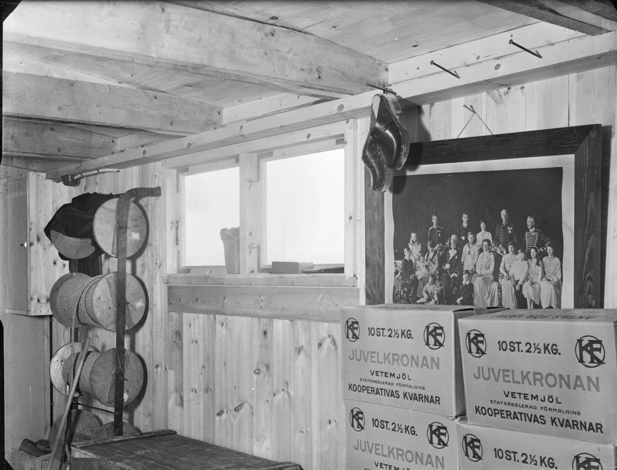 Förråd med inramat fotografi av kungafamiljen