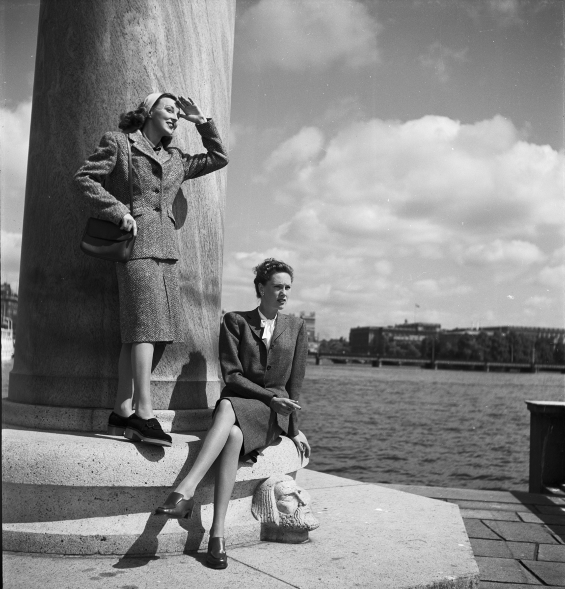 Titel: Två kvinnor i parken framför Stadshuset