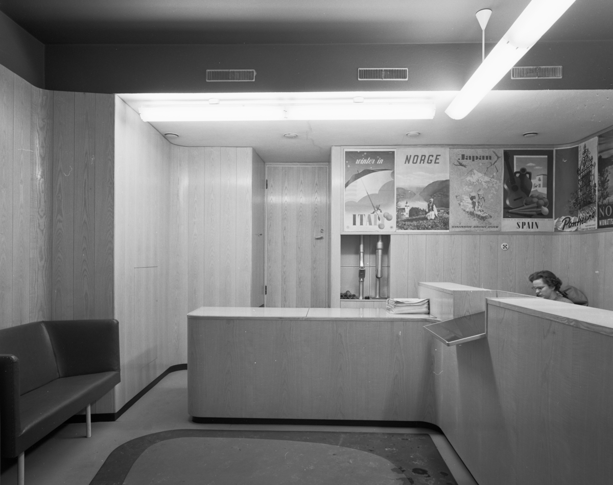 Interiör från Dagbladet Nya Samhället, reception med väntsoffa