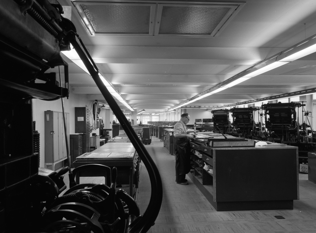 Interiör av sätteriet för tidningen Dagbladet Nya Samhället