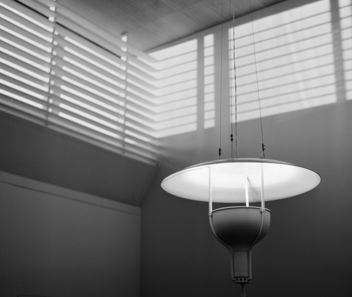Interiör. Detalj av fönster med ljusinsläpp och taklampa