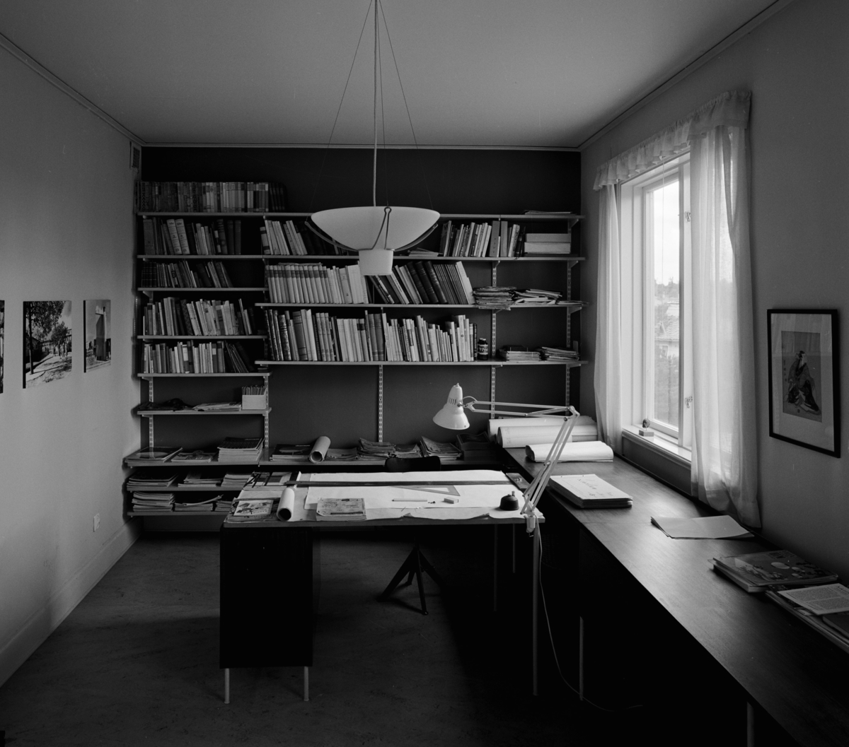 Interiör, arbetsrum med arbetsbänk längs fönsterväggen