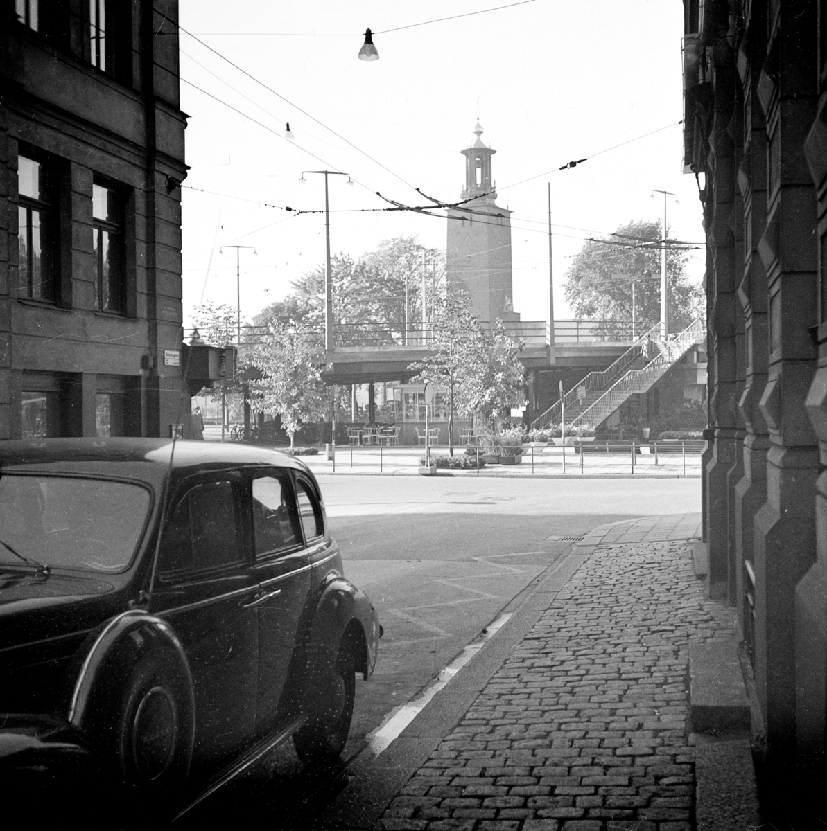 Vy över Stadshuset och Järnvägsparken från Herkulesgatan.