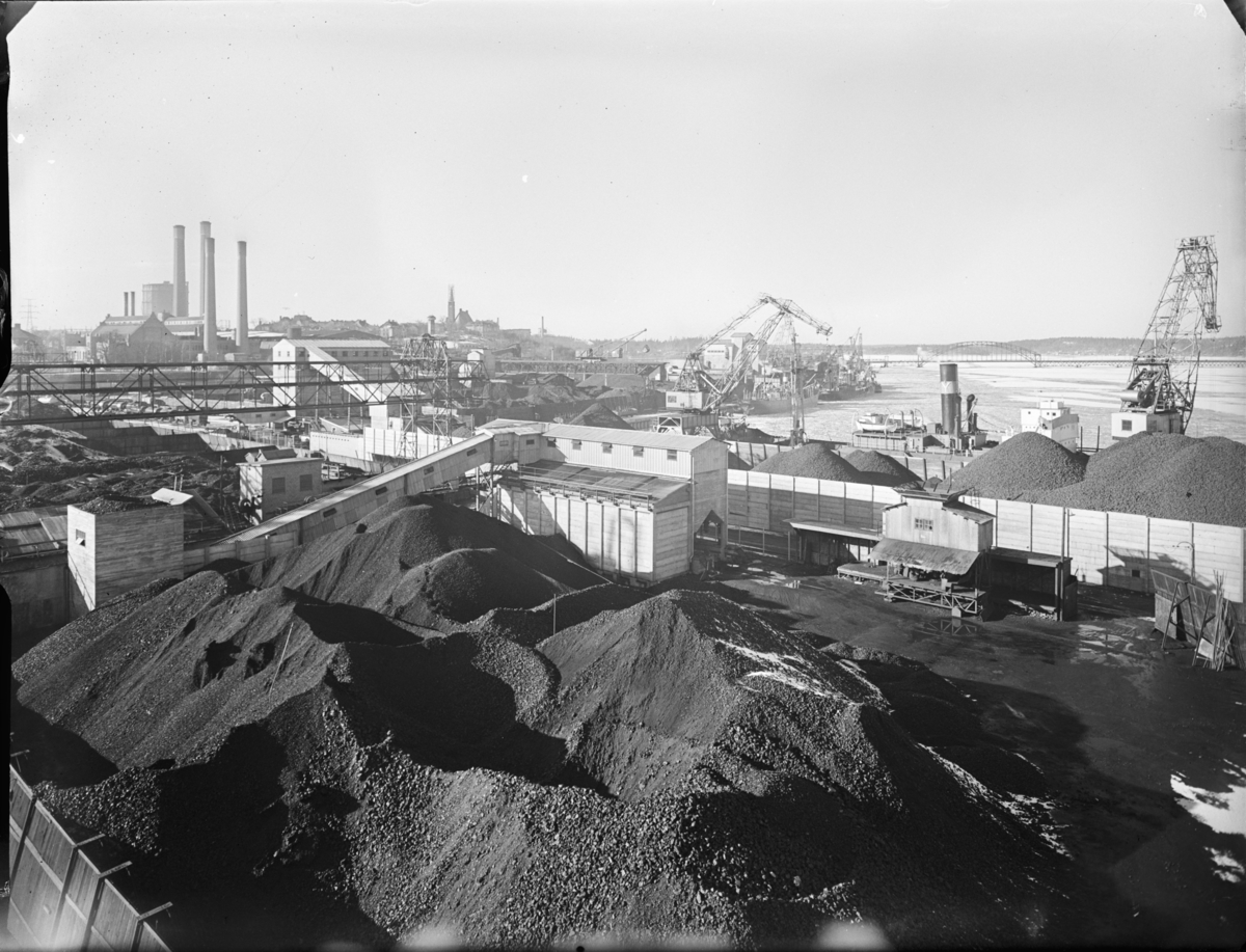 Utsikt över kolhögarna mot Hjorthagen och gasklockorna