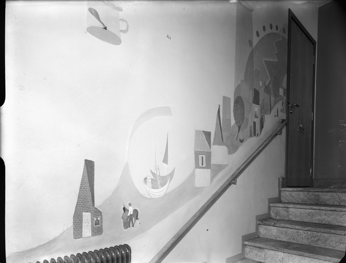 Titel: Väggdekoration i trappuppgång, Hägerstensåsen Interiör