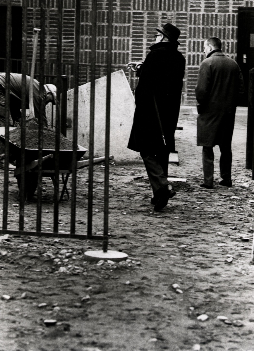 Sigurd Lewerentz på byggarbetsplats tillsammans med man.