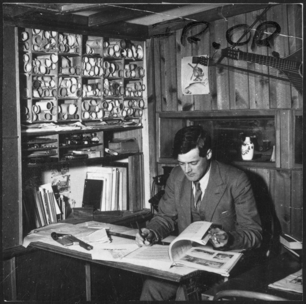 Interiör, Ralph Erskine vid sitt arbetsbord.