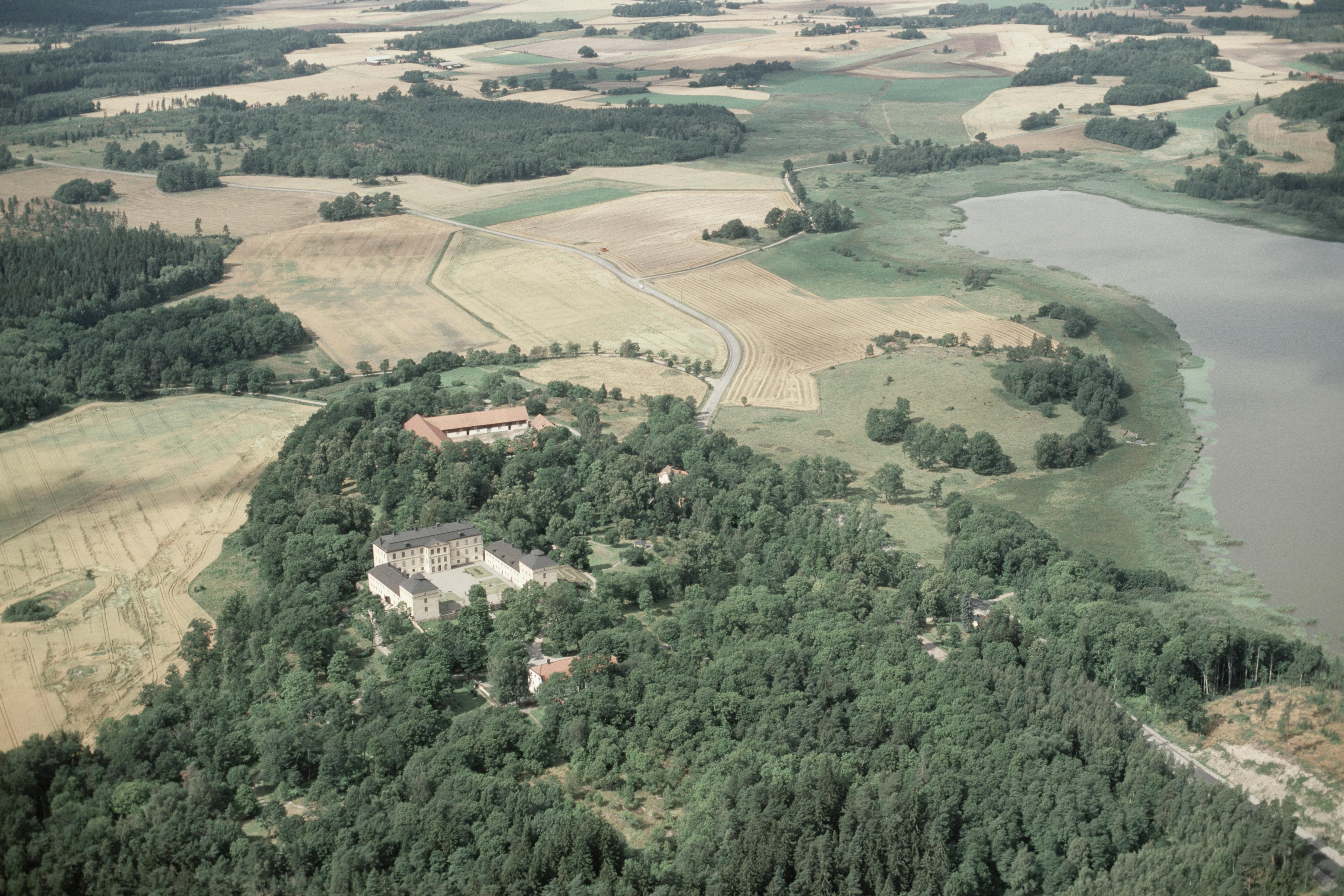 Lövstads slott (skrivs även Löfstad / Löfstads slott) RAÄnr Kimstad 20:1 vid Lövstadssjön. Bilden är tagen mot (väderstreck): V