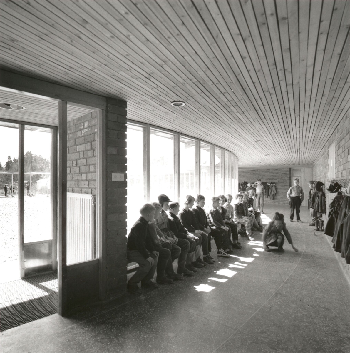 Interiör, barn i kapprum.