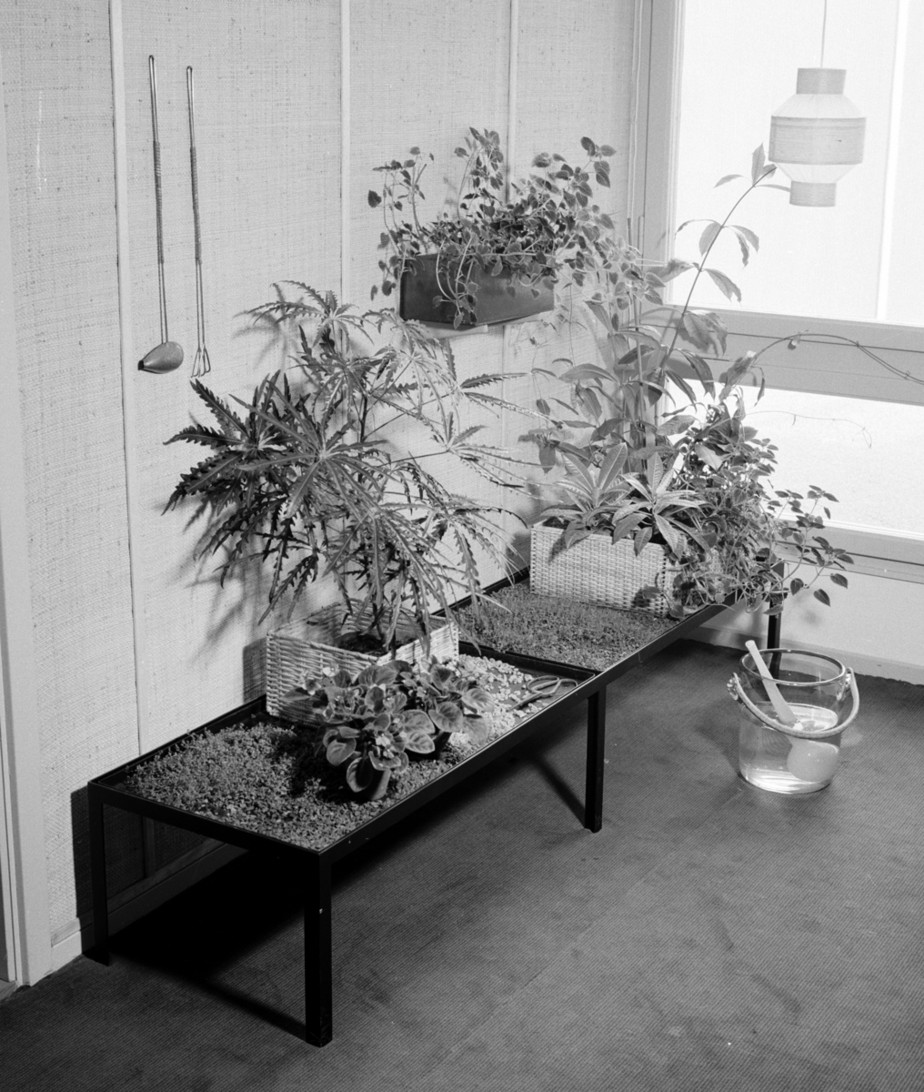 Interiör, blombord vid fönster. Från Hem i Sverige-husets finrum på Helsingborgsutställningen.