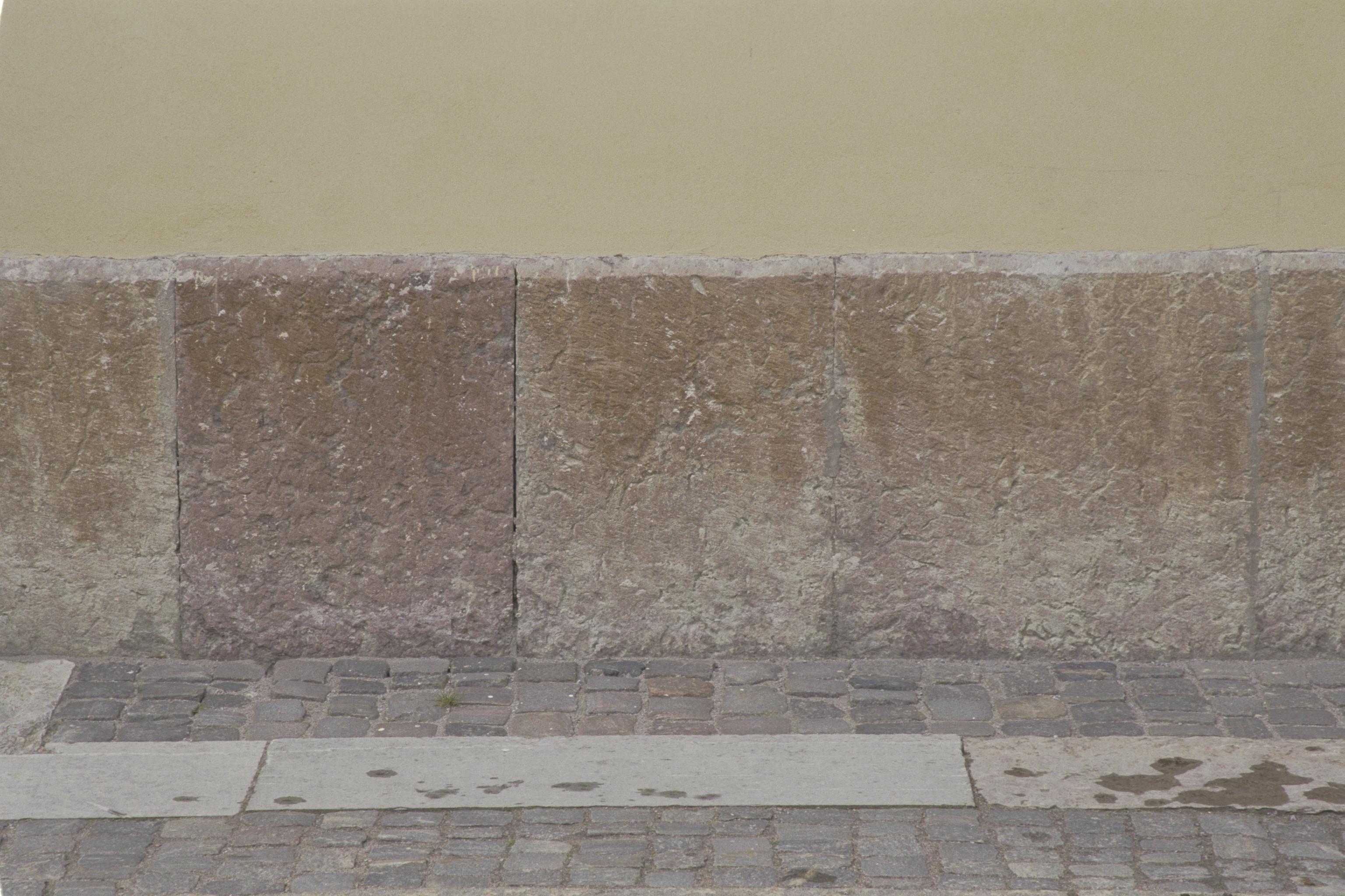 Stenhusets östra fasad, Västra Skolgatan. Sockeln vid andra axeln från söder.