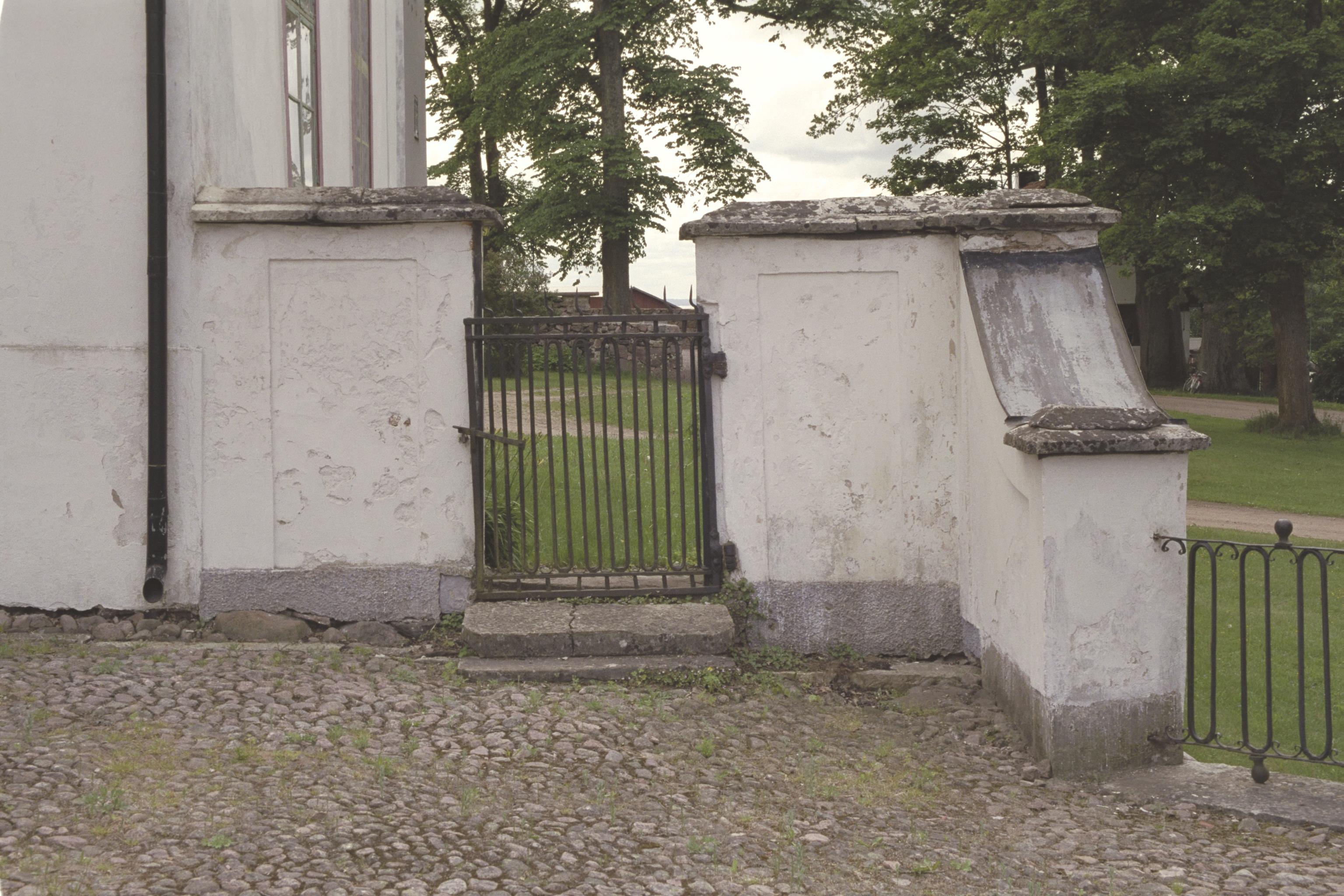 Gårdsplanens södra ingång, grinden sedd från norr.