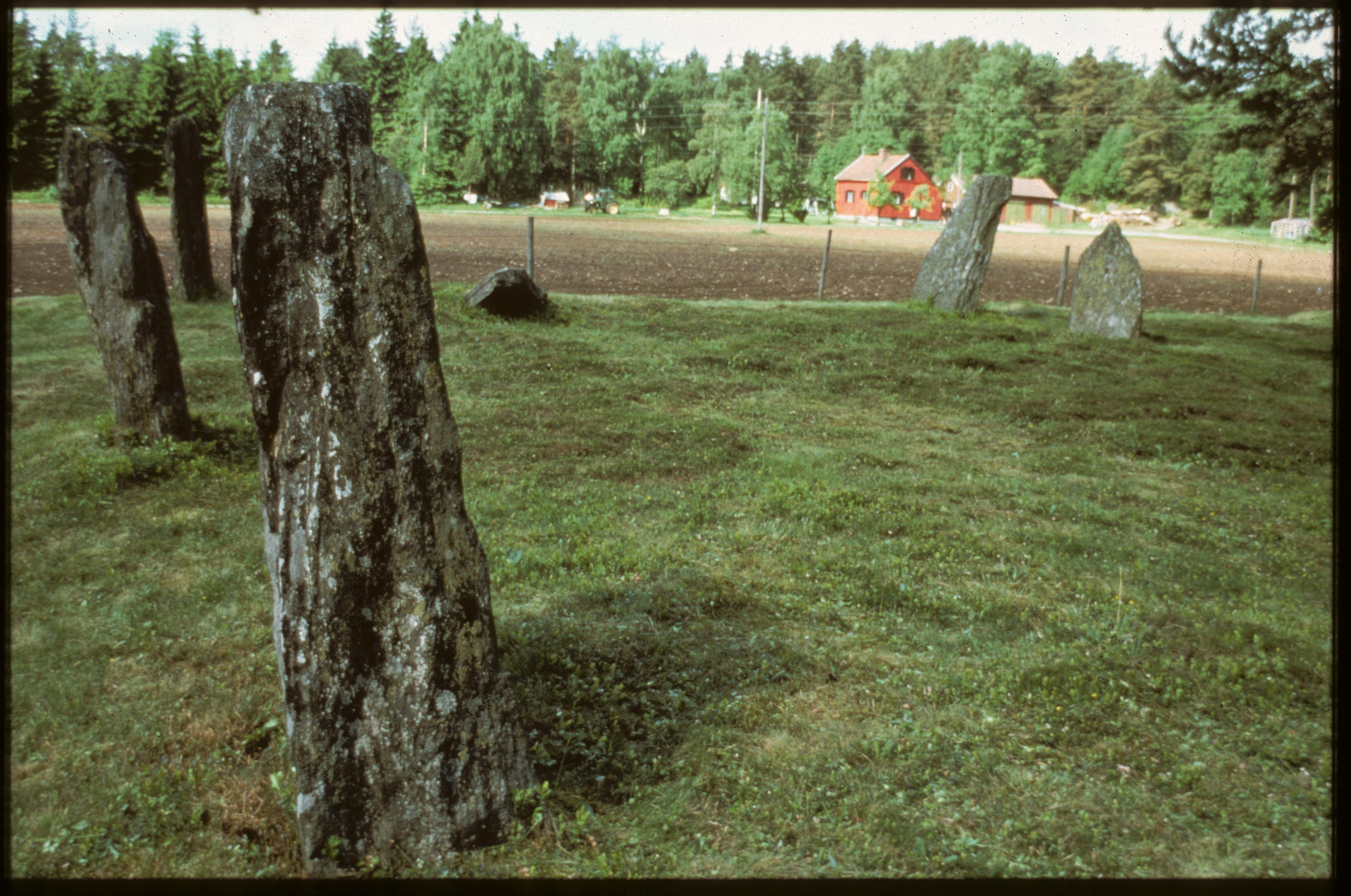 Gravfält med rektangulär "domarring". Spekeröd 128:1.