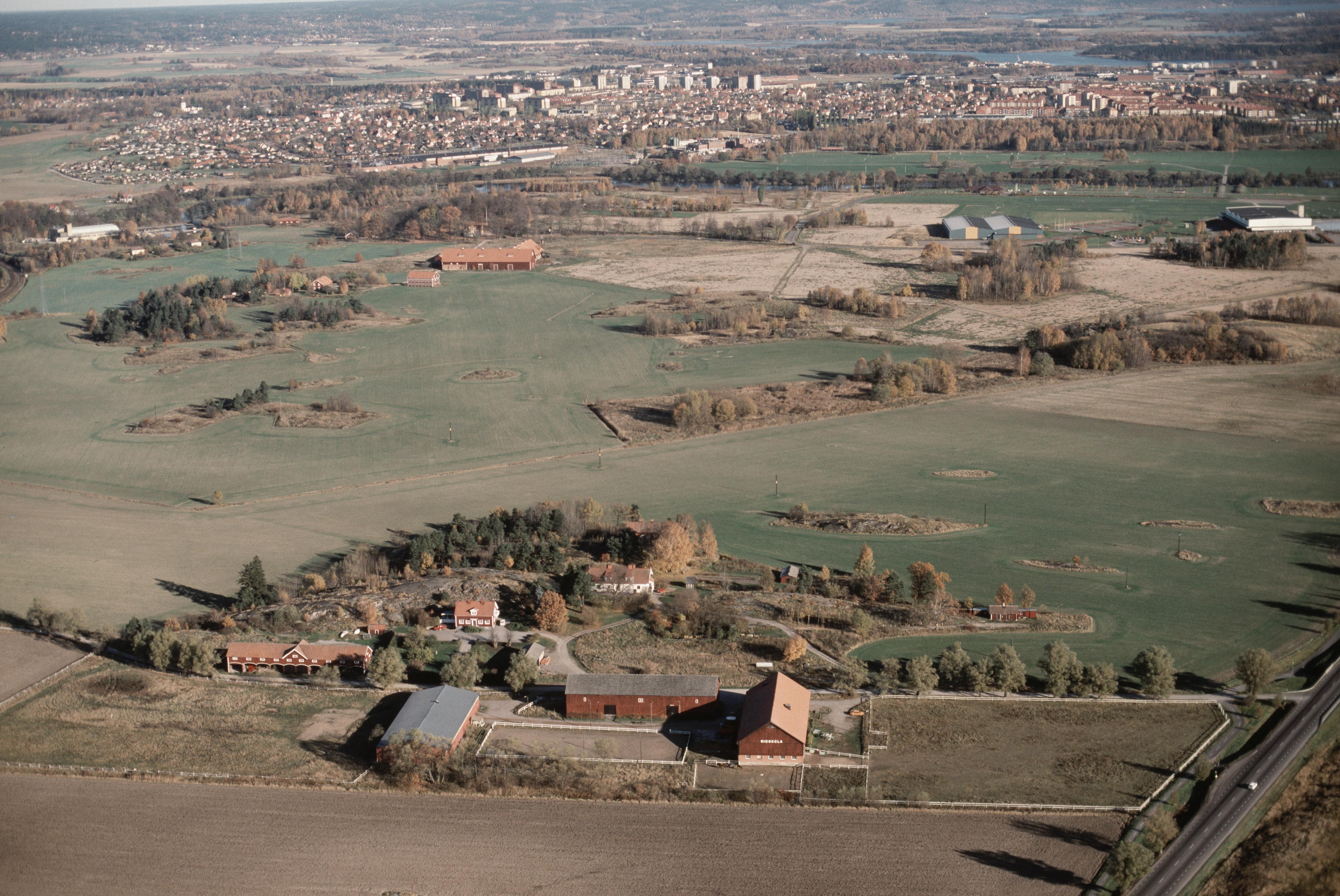 (Tid. Borgs socken). Hällristningar RAÄnr Borg 272:1-2 m.fl., Eneby tomt Borg 206:1. I bildens övre del Borgs säteri, Himmelstalund, Motala ström och Norrköping. Bilden är tagen mot (väderstreck): NO