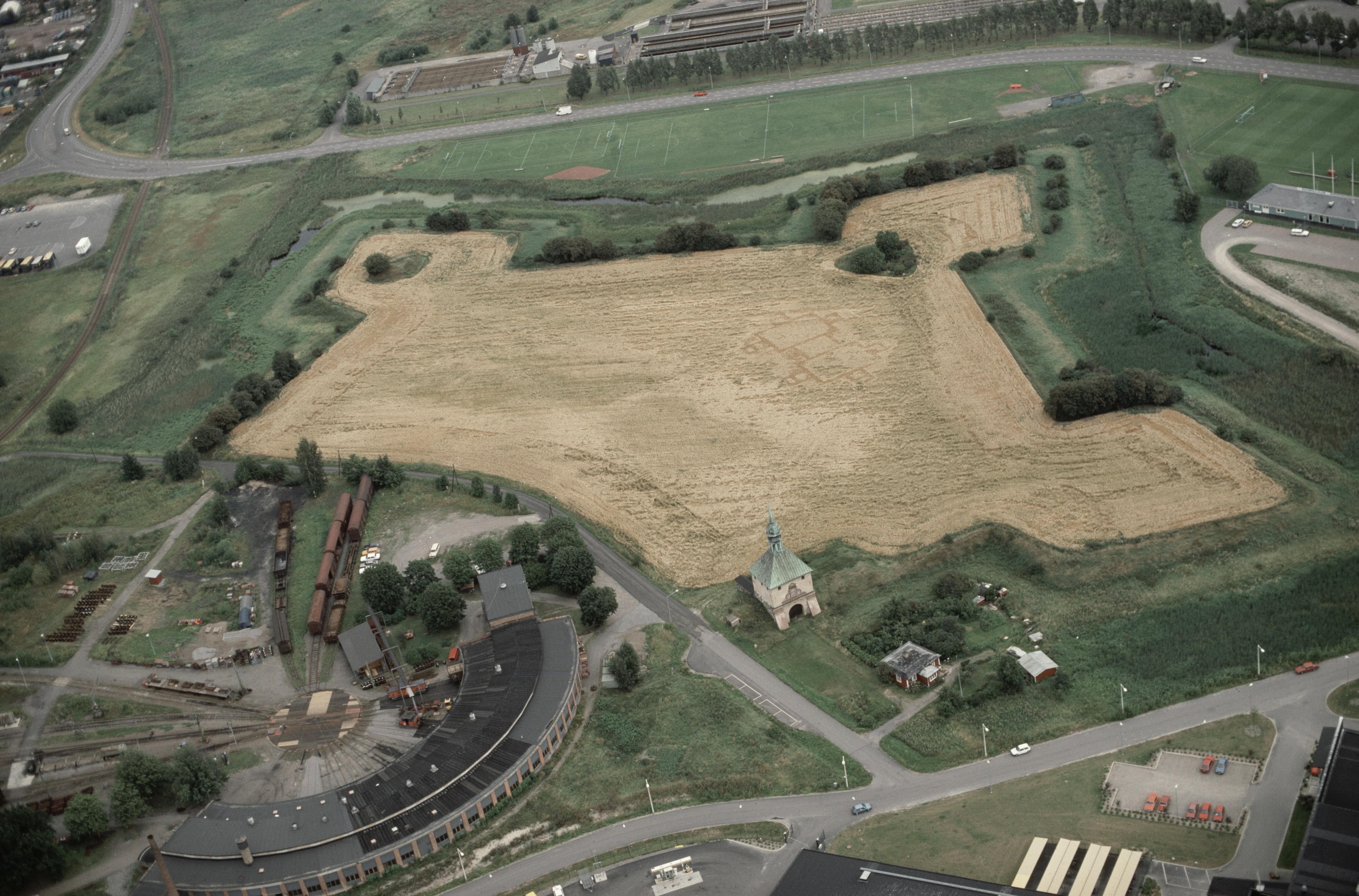 Befästningsruiner, ursprungligen i regelbunden femuddig stjärnform. Johannisborgs slottsruin RAÄnr Sankt Johannes 51:1. Bilden är tagen mot (väderstreck): NO