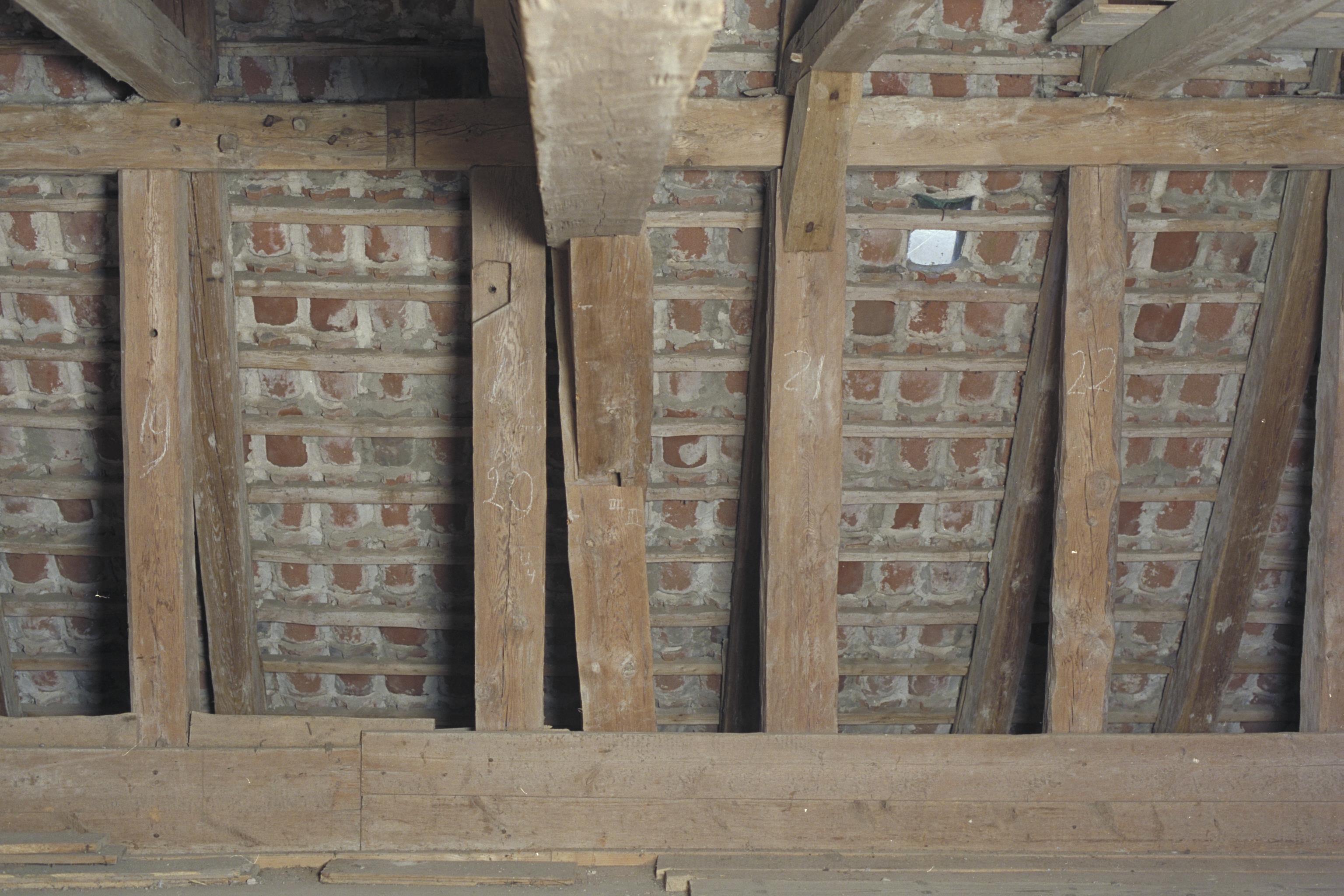 Övre vinden. Ekbjälkar med väggar och tak i tegel.