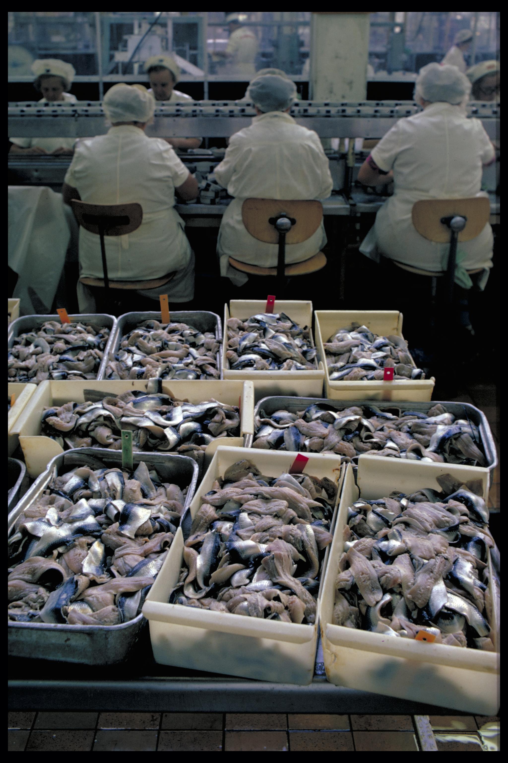 Filéad fisk, vid bandet. Bilden troligen från omkring 1970.