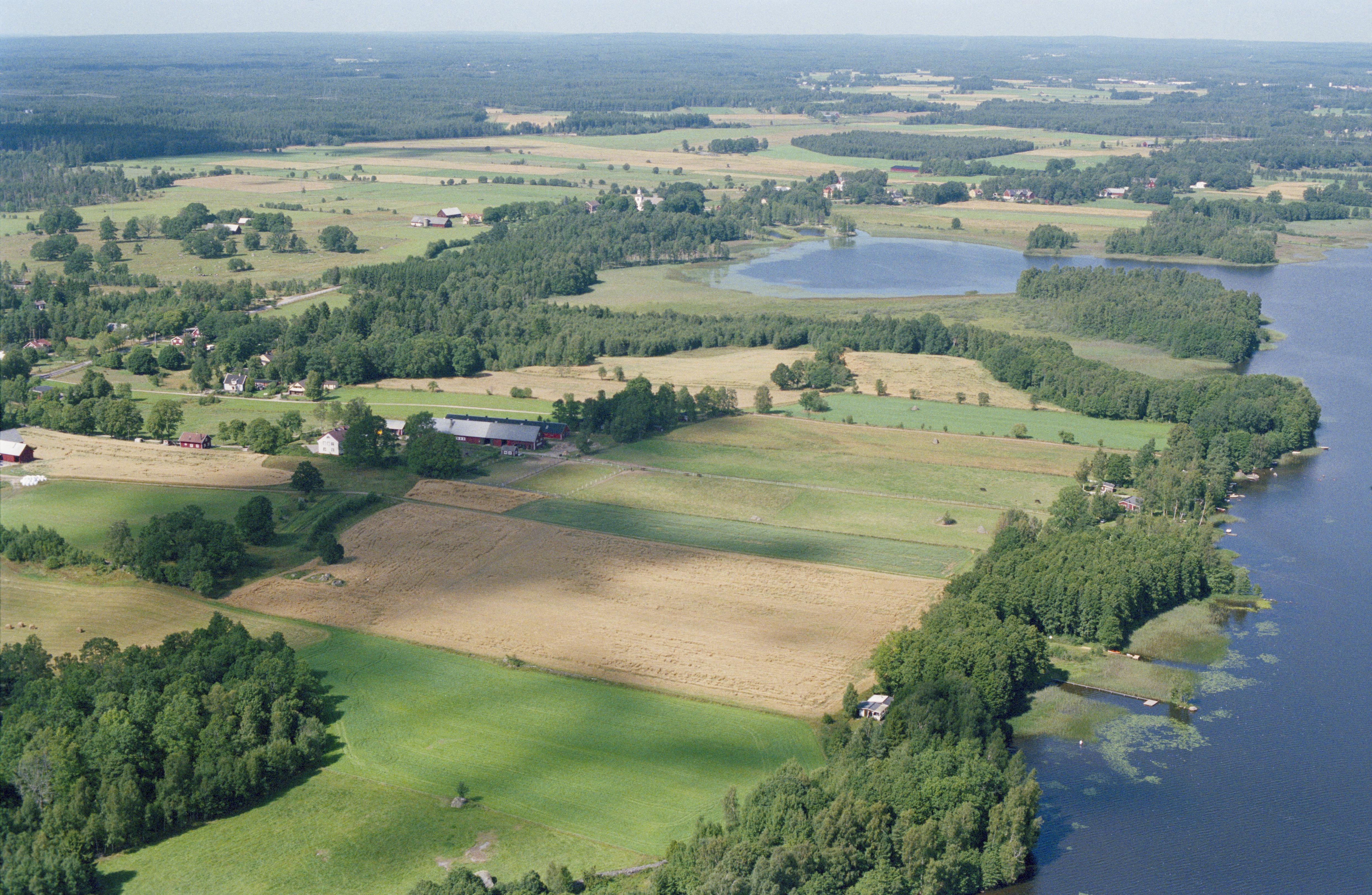 Blädinge kyrka i bildens övre del. Bilden är tagen mot (väderstreck): N