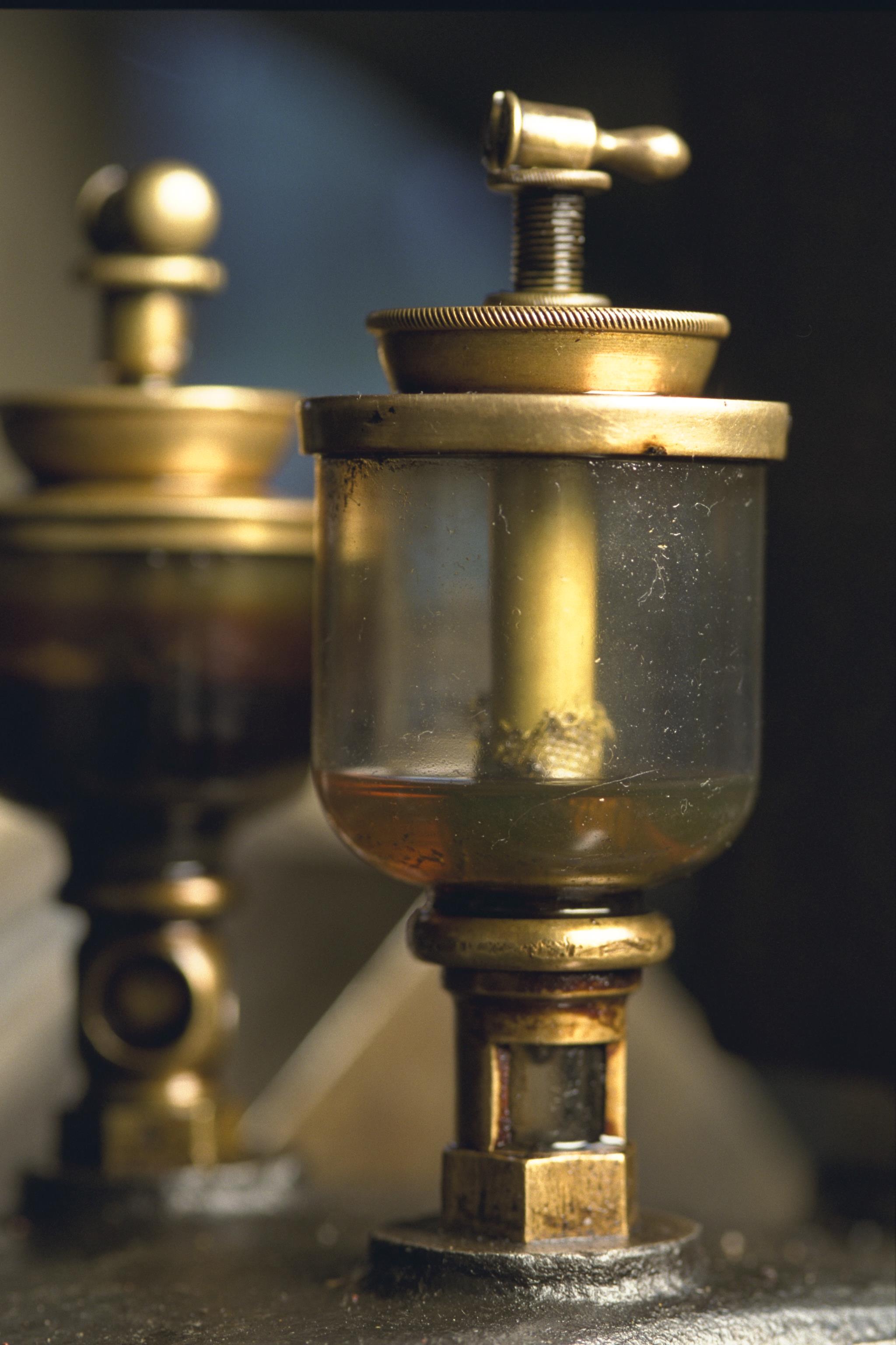 Interiör från gruvlaven. Maskindetaljer; smörjkopp.