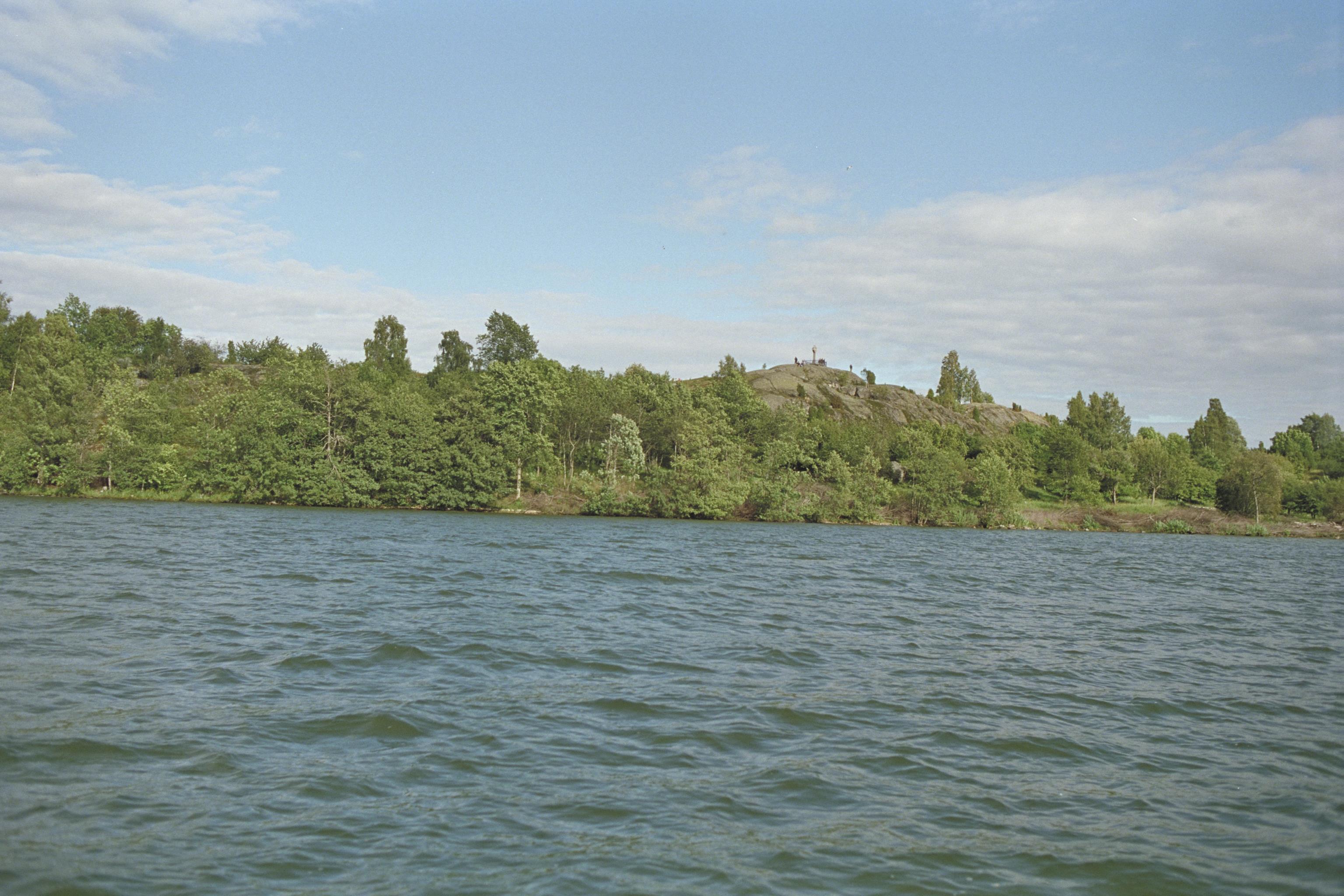 Sjösidan in mot Björkö. Ansgarskorset på Borgvallen skymtar i bakgrunden.
