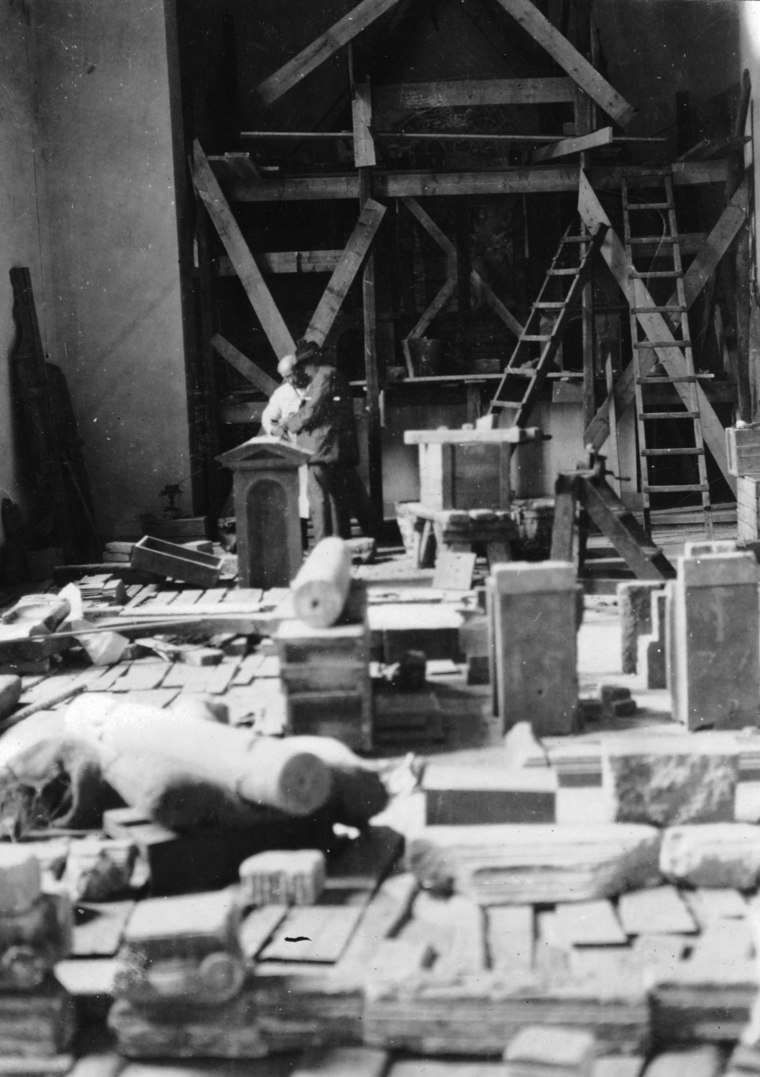 Beskrivning: Altare från 1577, "lekmannaaltaret". Detaljer, under restaurering.