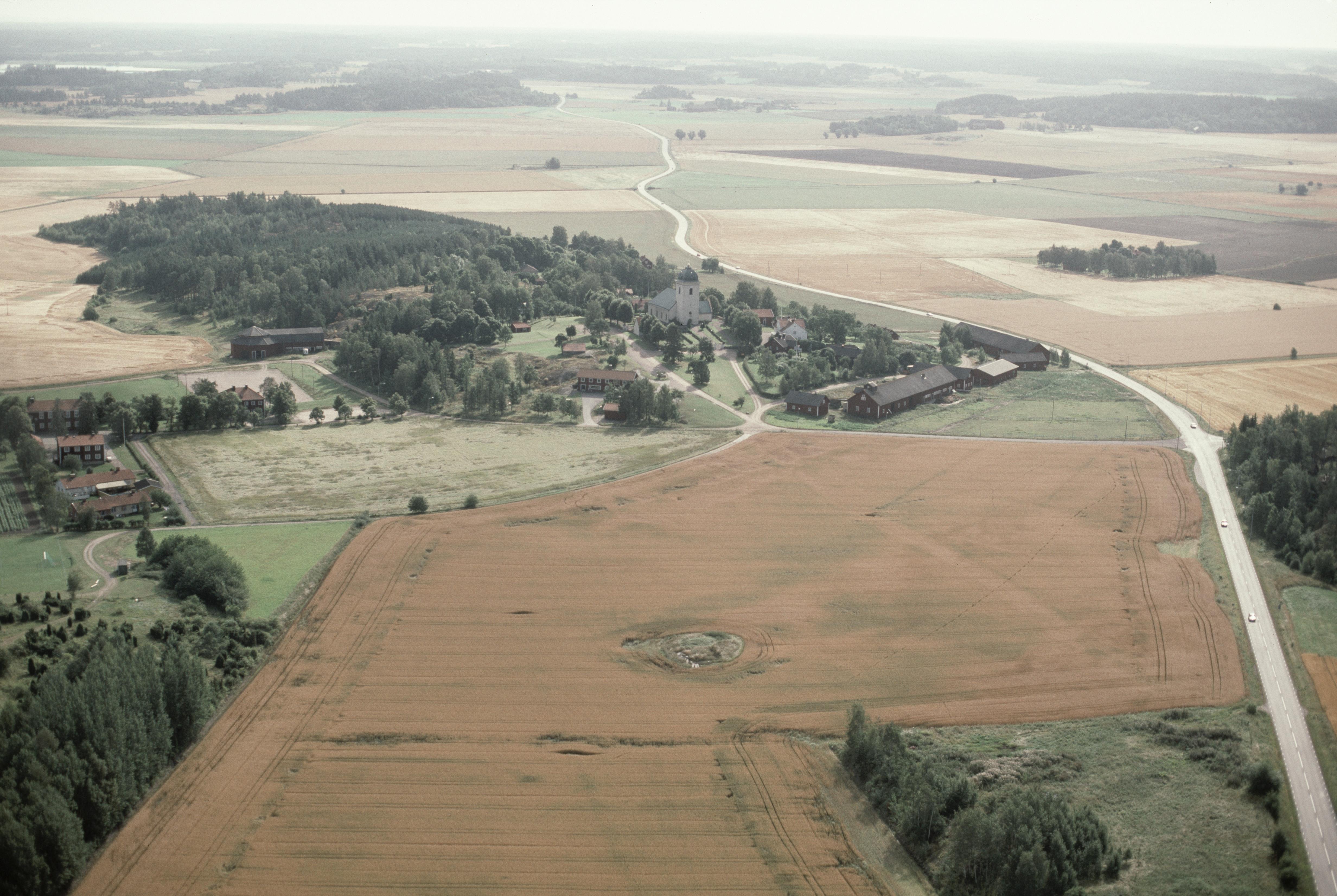Beskrivning: Dagsbergs kyrka och kyrkby. Bilden är tagen mot (väderstreck): Ö
