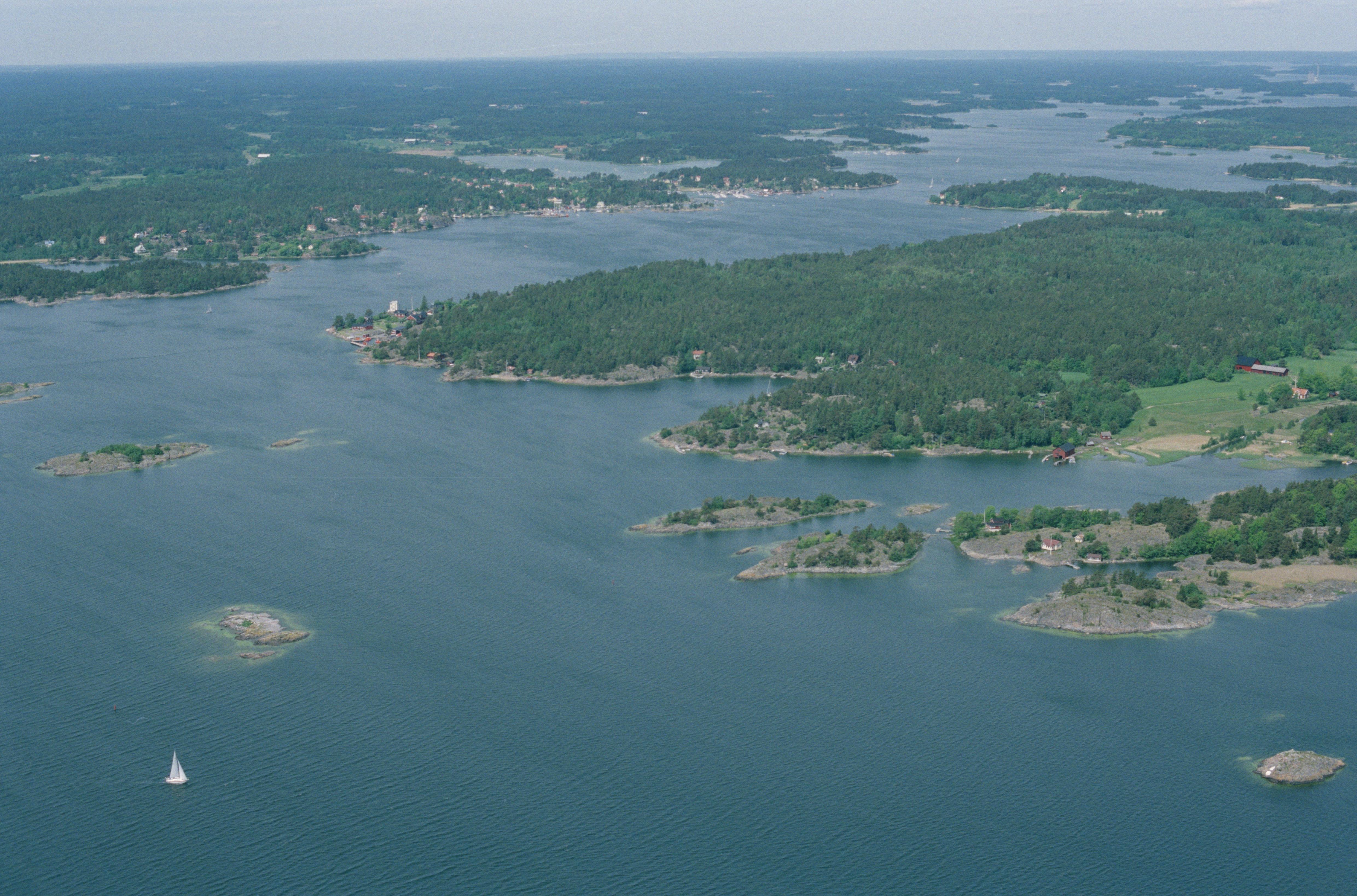 Beskrivning: Vikbolandet. I bildens övre del röse på Sundsholmen RAÄnr Jonsberg 14:1 vid orten Arkösund. Kuggviksskären till vänster om bildens mitt, Ön Arkö i Bråviksfjärden till höger. Bilden är tagen mot (väderstreck): VSV