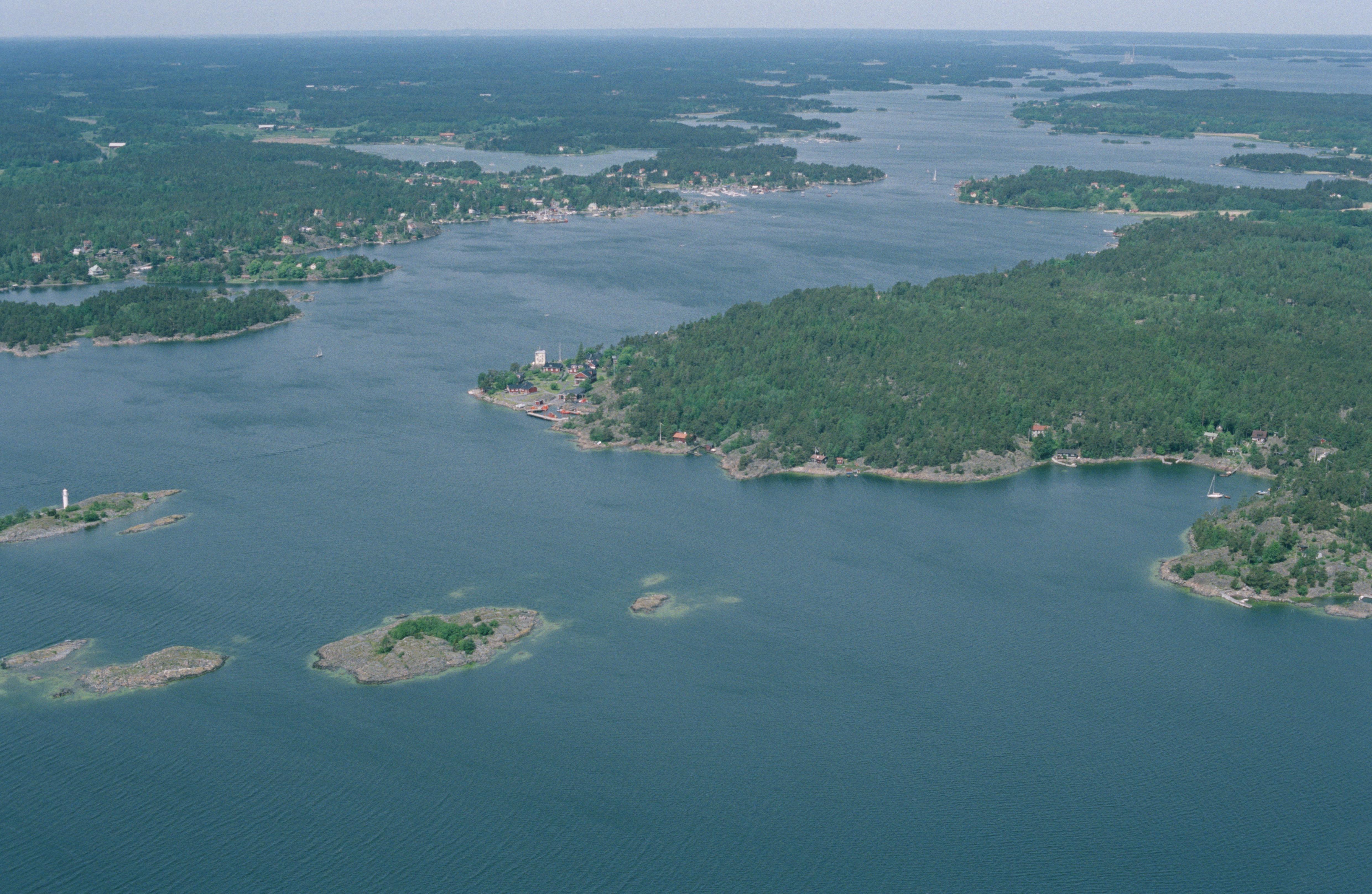 Beskrivning: Vikbolandet. I bildens övre del röse på Sundsholmen RAÄnr Jonsberg 14:1 vid orten Arkösund. Kuggviksskären till vänster om bildens mitt, Ön Arkö i Bråviksfjärden till höger. Bilden är tagen mot (väderstreck): VSV