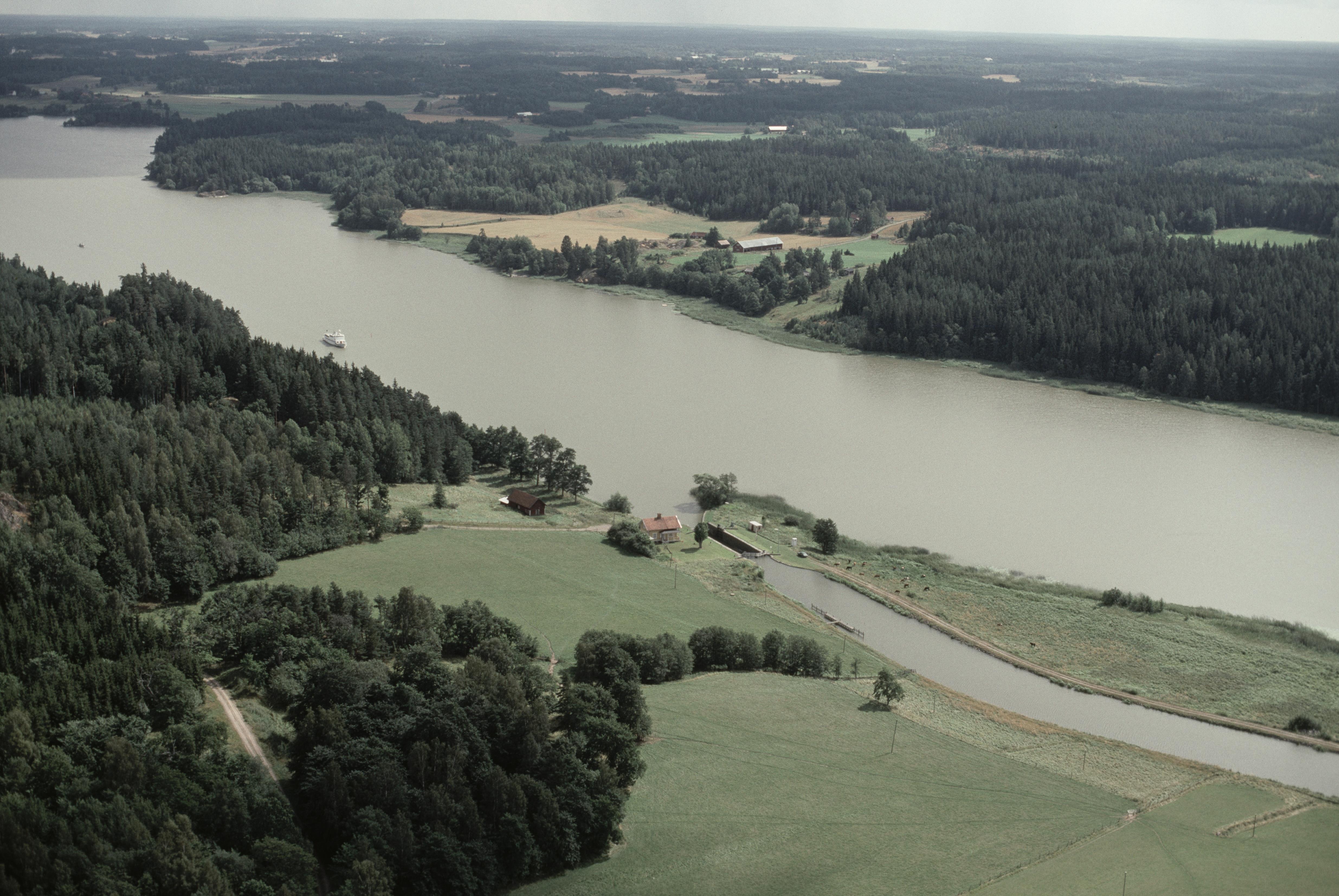 Beskrivning: Anmärkning (övrig): Riksintresse-nr/namn: E9c - Göta kanal. Socken: delen i Kimstad, Skärkind och Tåby. Motivering: Kommunikationsmiljö med landets främsta kanalmiljö (utförd 1810-32), av stor teknikhistorisk betydelse och med dominerande läge i omgivande landskap. - Uttryck för riksintresset: Kanalmiljön genom Norrköpings kommun med omgivande landskap och bebyggelse. Slussvakarboställen. De planterade alléerna ger kanalen en parkliknande karaktär. Hamn och lastageplats vid Mem där kanalen mynnar i Slätbaken. Lotsstation, lotsbostad och tullpackhus. (Miljön berör också Motala, Söderköping och Linköpings kommuner samt Skaraborgs län.). - I området ingår även: Mems säteri, förvaltarbostad. [Texten uppdaterat av (…) Texten i detta fält har förkortats vid migrering till e-arkivet. Se filbilagan extra.xml för fullständig information under note_archivist. Beskrivning: Göta kanal vid Hulta sluss och sjön Asplången. Vägmärke RAÄnr Kimstad 214:1 nere till höger. Socknet Norrköping i bildens nedre del och socknen Västra Husby och Skärkind i bildens övre del. Bilden är tagen mot (väderstreck): SO Fotosyfte: Flygbildsdokumentation