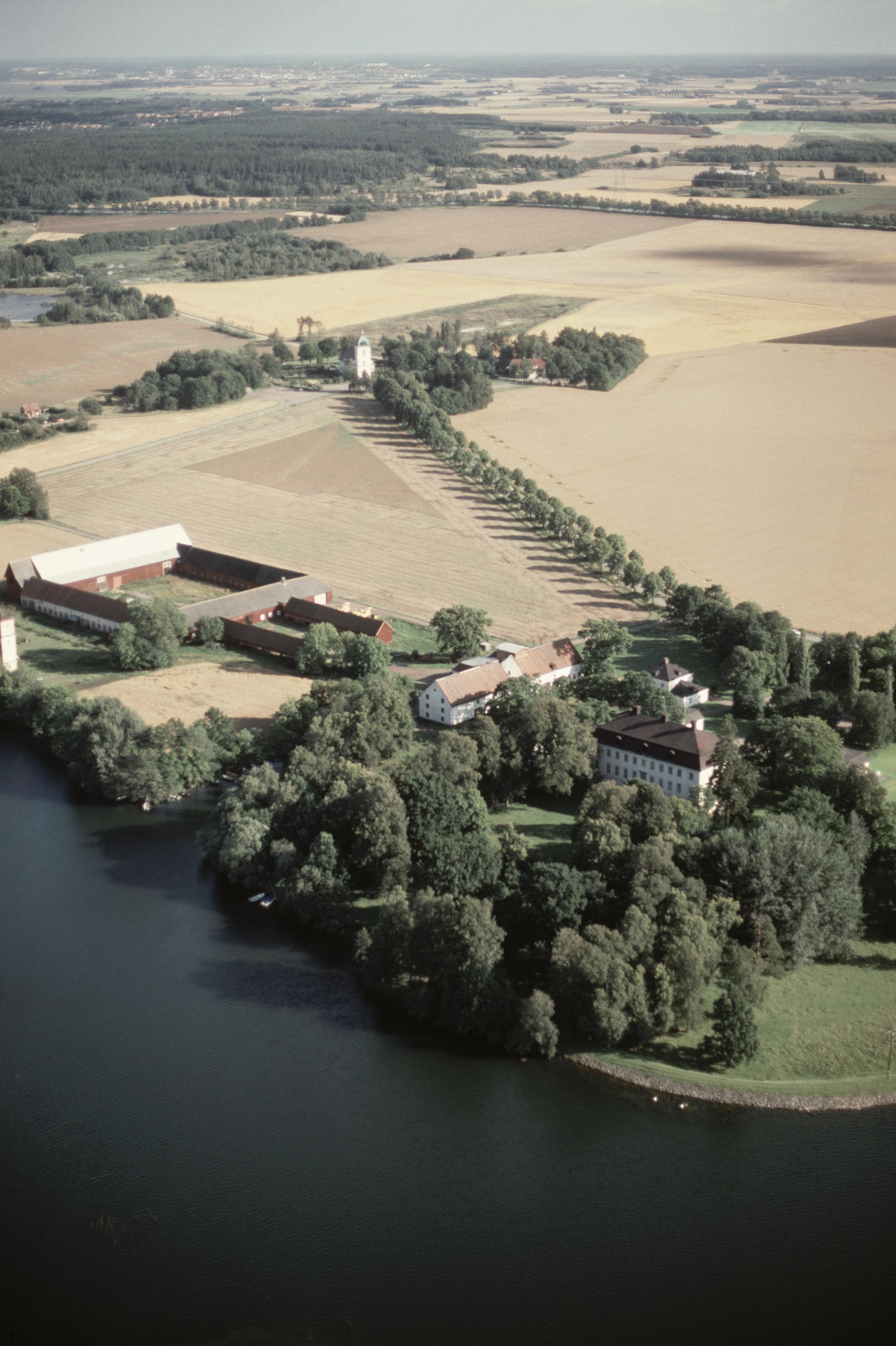 Beskrivning: Ljungs slott och Ljungs kyrka vid Ljungssjön. Bilden är tagen mot (väderstreck): SSO