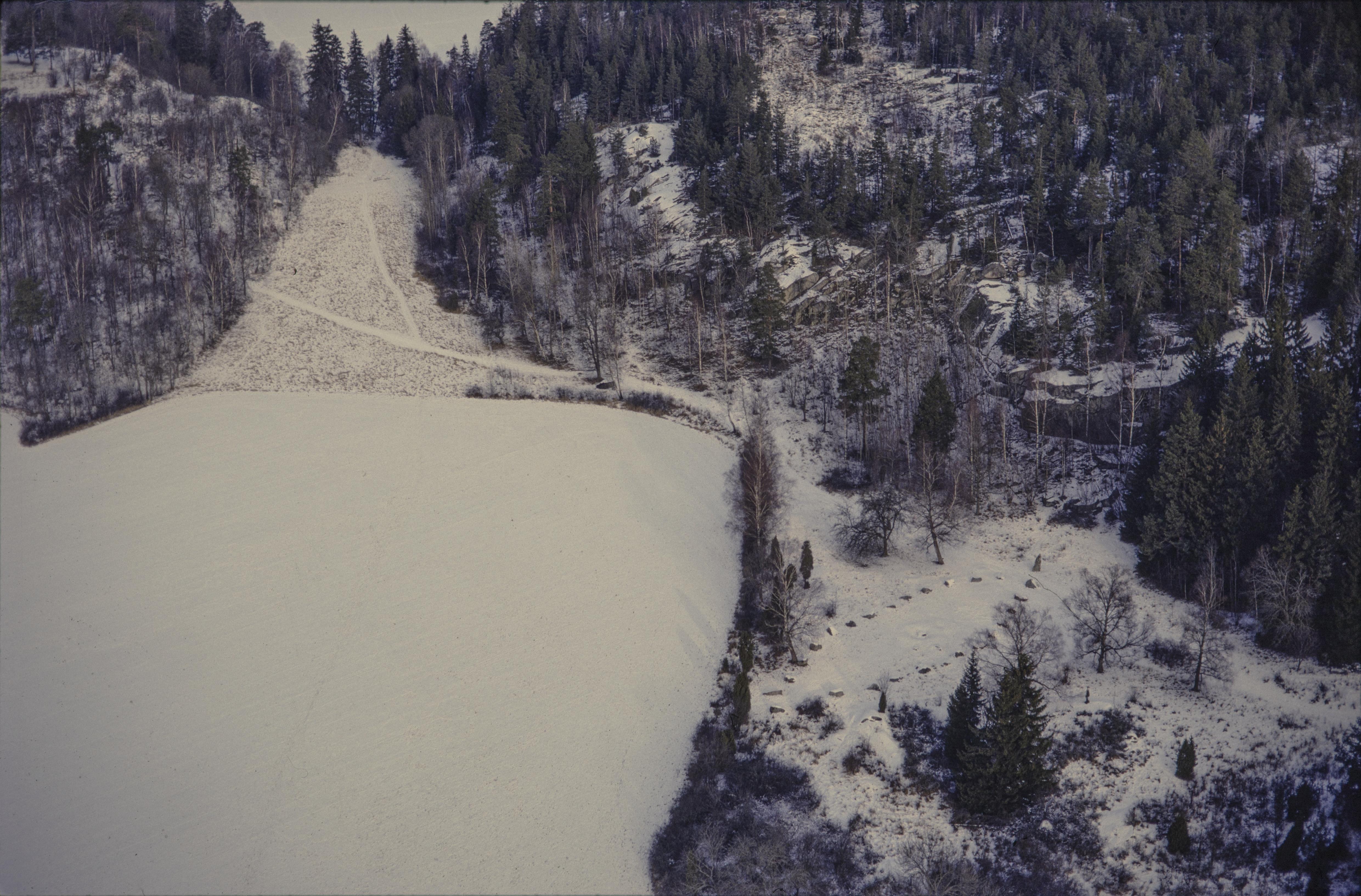 Beskrivning: Runsa gravfält med skeppssättning RAÄnr Ed 1:1 och Runsa fornborg / ?Runsa borg? RAÄnr Ed 2:1. Bilden är tagen mot (väderstreck): N