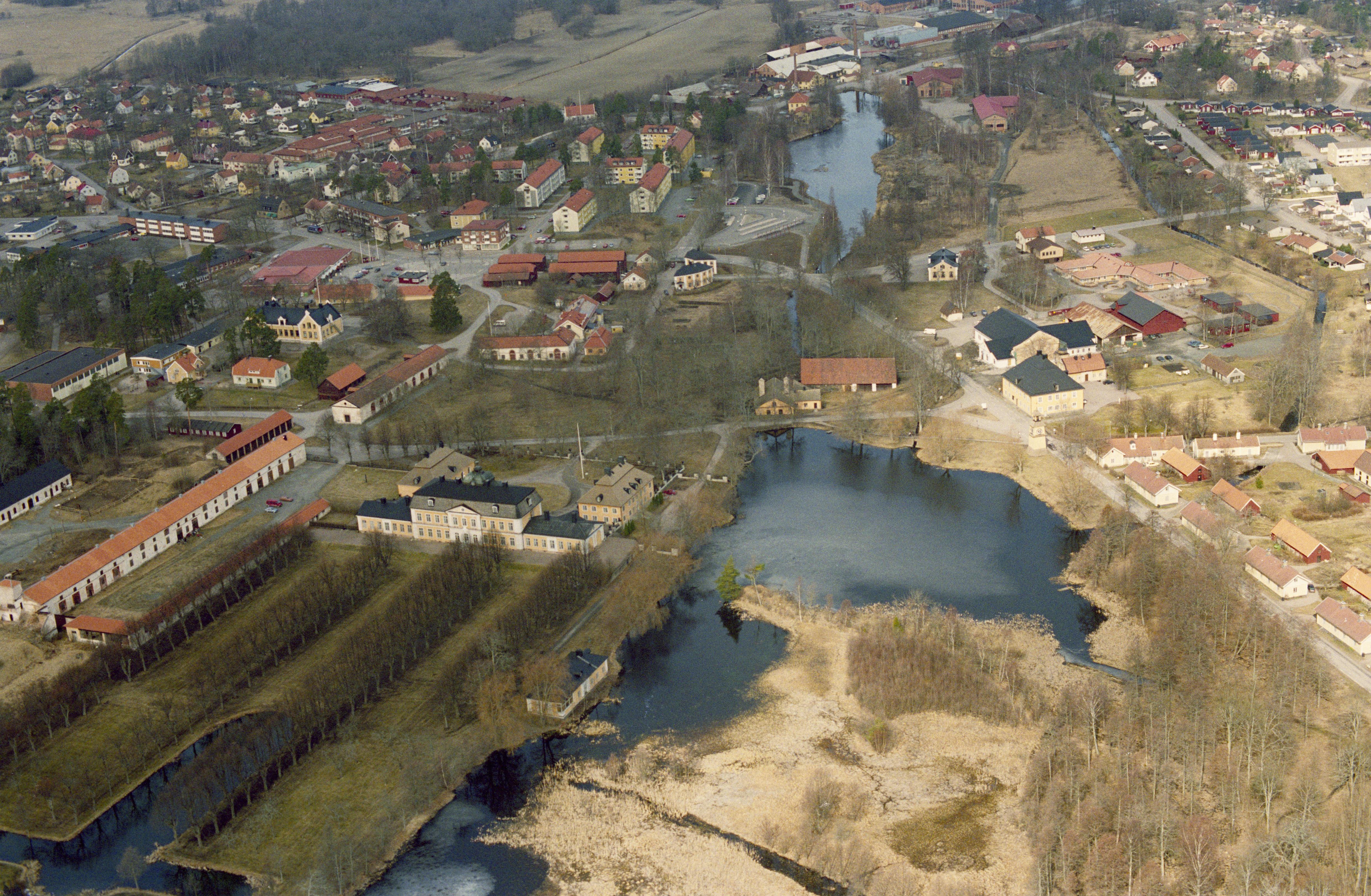 Beskrivning: Österbybruk vid Nerån och sjöarna Stordammen, Oppdammen, Sågdammen och Herrgårdsdammen. Bruksområde med herrgård och kyrka samt smedje-, kvarn-, hammar- och hyttlämningar m.m. RAÄnr Film 81:1. Bilden är tagen mot (väderstreck): NNV