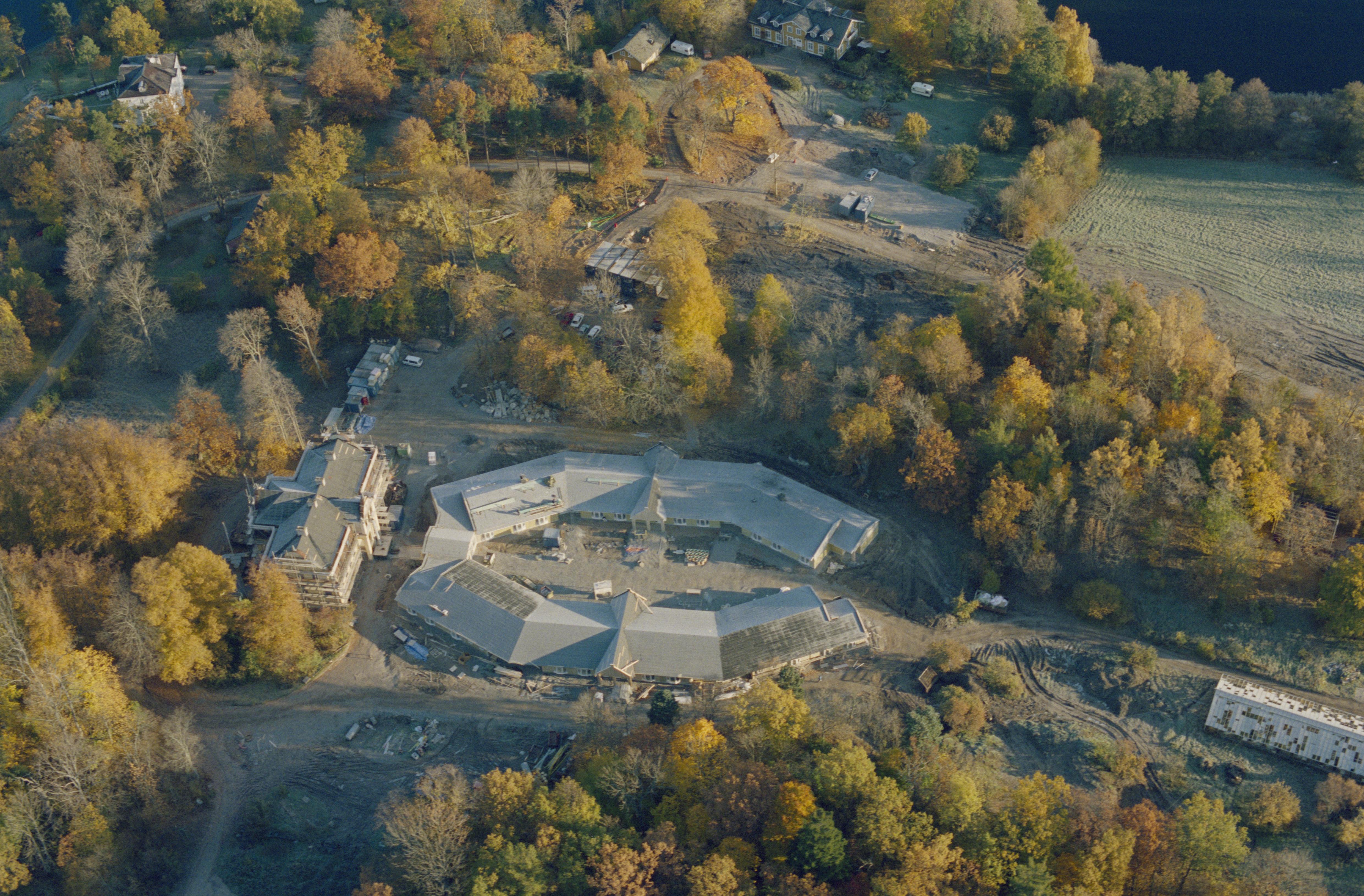 Beskrivning: Farsta slott och bytomt Farsta gårdstomt RAÄnr Gustavsberg 42:1. I bildens övre del Villa Farsta Udde vid Farstavikens södra strand. Bilden är tagen mot (väderstreck): NO