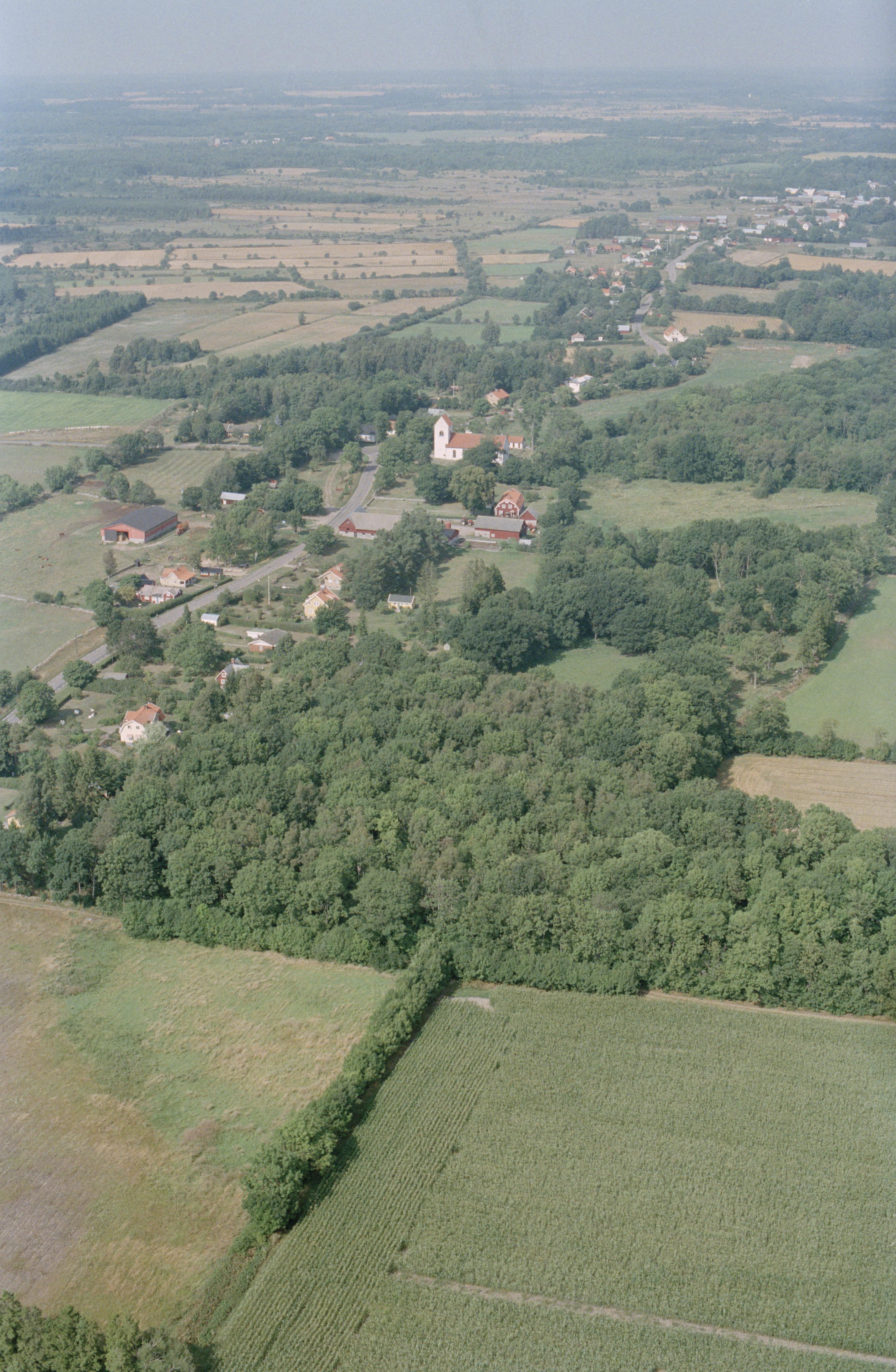 Beskrivning: Långlöts kyrka och kyrkby i bildens övre del. Bilden är tagen mot (väderstreck): N