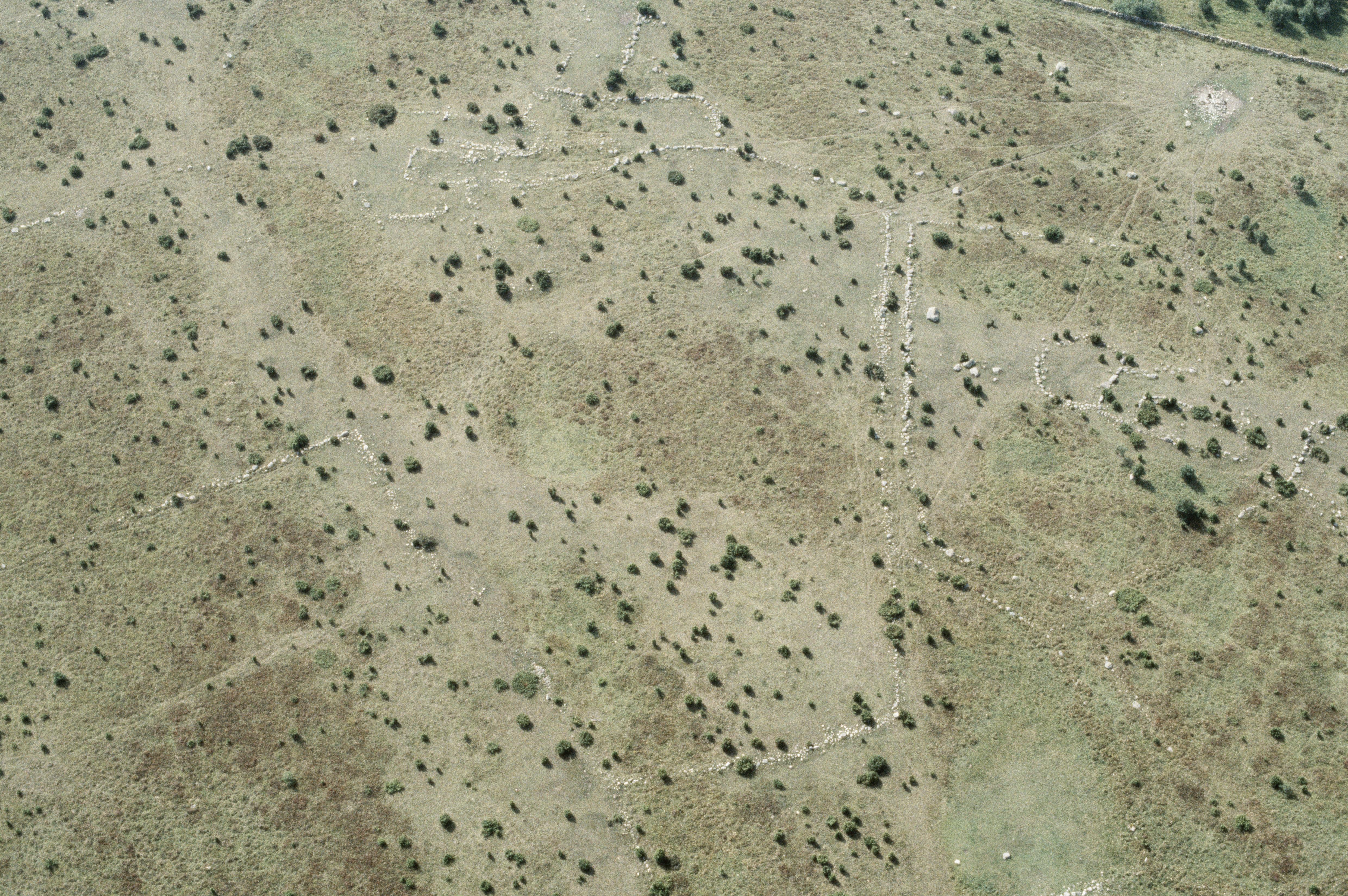 Beskrivning: Jättegravarna vid Slatekärr. Hägnadssystem RAÄnr Löt 65:12 och husgrunder RAÄnr Löt 65:5 (till höger) och 65:6 m.fl. Bilden är tagen mot (väderstreck): S