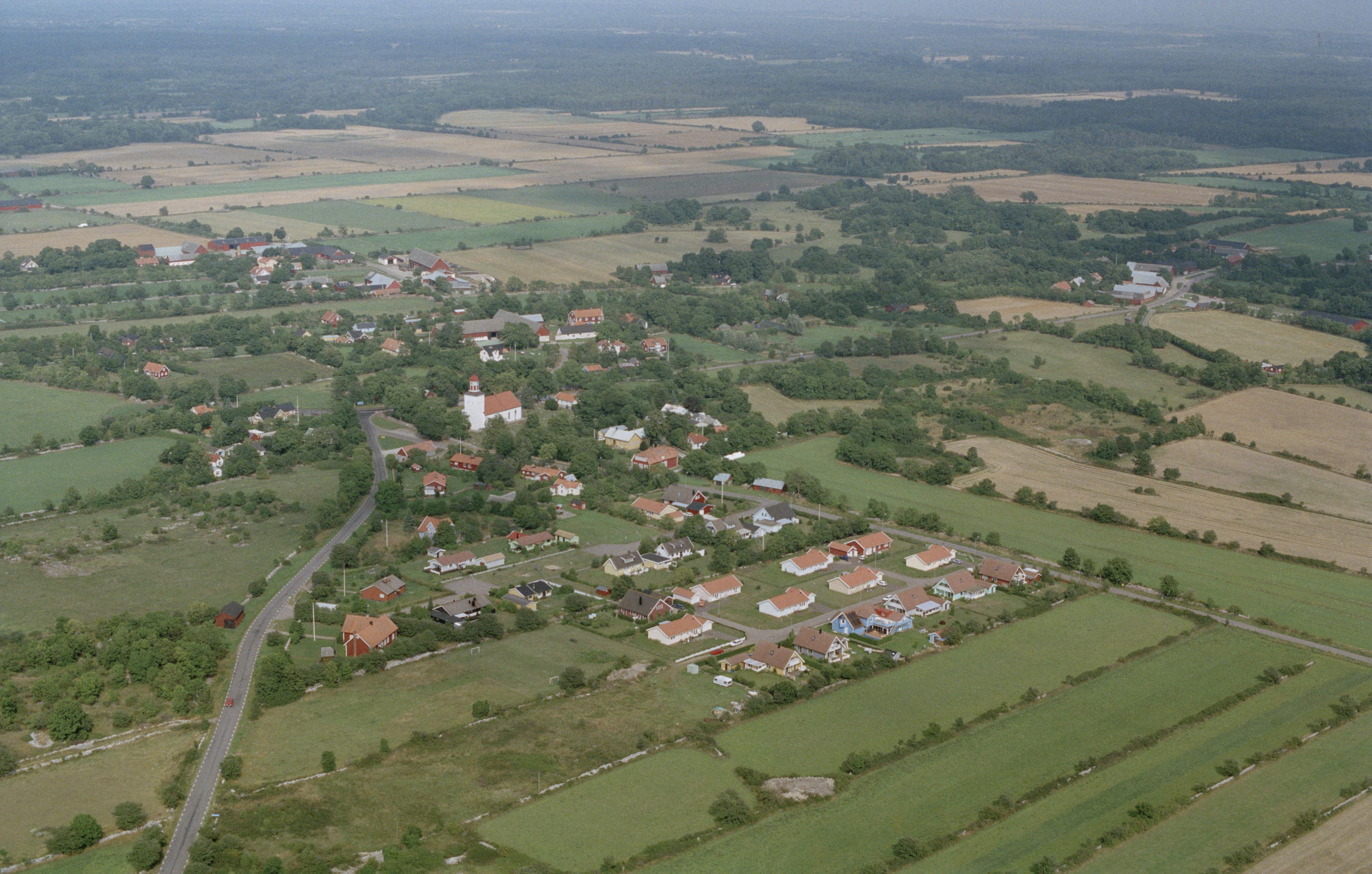 Beskrivning: Räpplinge kyrka vid bildens mitt. Bilden är tagen mot (väderstreck): NNO